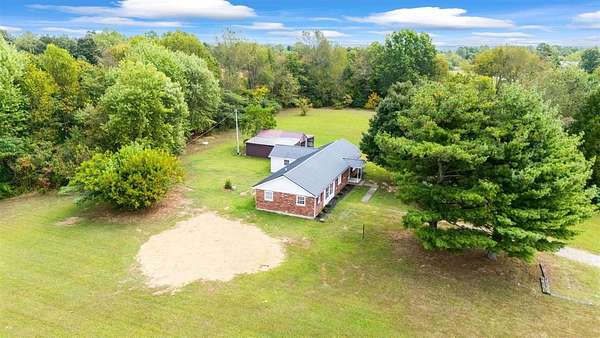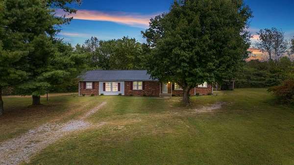 Are you looking for a little acreage within a quiet, country setting? Then look no further! Nestled down a dead end road, this brick ranch style home is situated on 2 acres within minutes of Nolin Lake and Mammoth Cave National park, and hosts new granite as well as new flooring, fresh paint, and updated fixtures throughout. There is plenty of space inside, with the potential for a 4th bedroom, or a home office, the choice is yours. Outside features a detached garage/workshop, tidy landscaping, and mature trees in addition to a partially fenced yard. Properties like this aren't available often, contact the listing agent for your private showing today. One or more photo(s) was virtually staged.