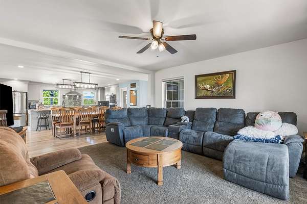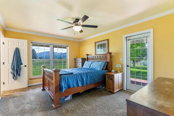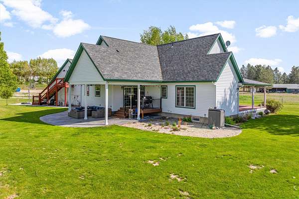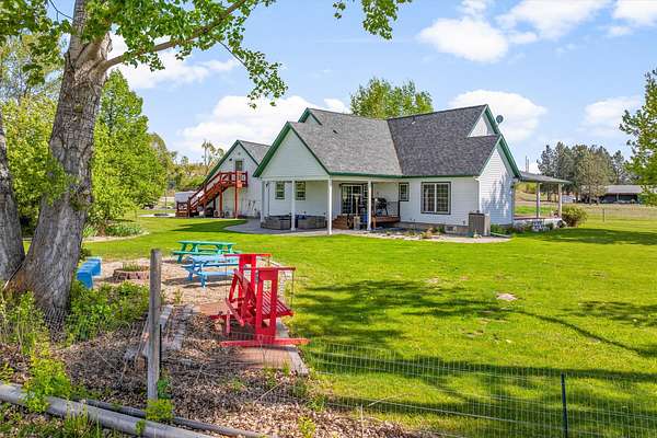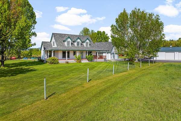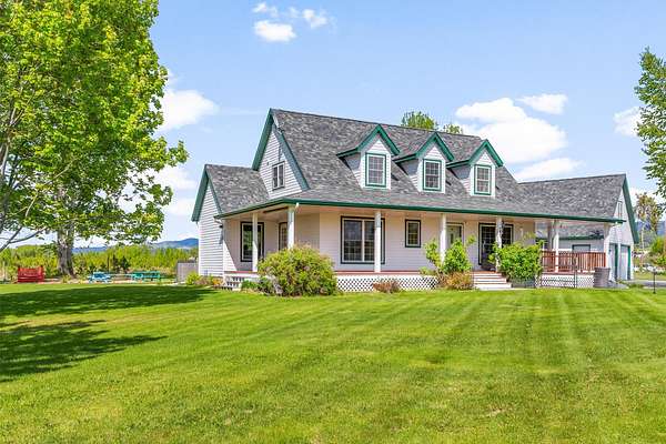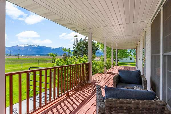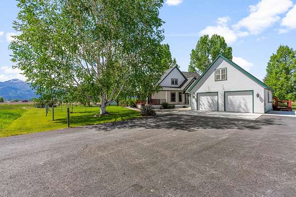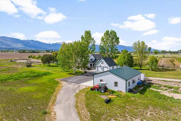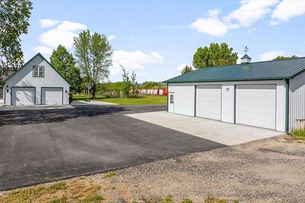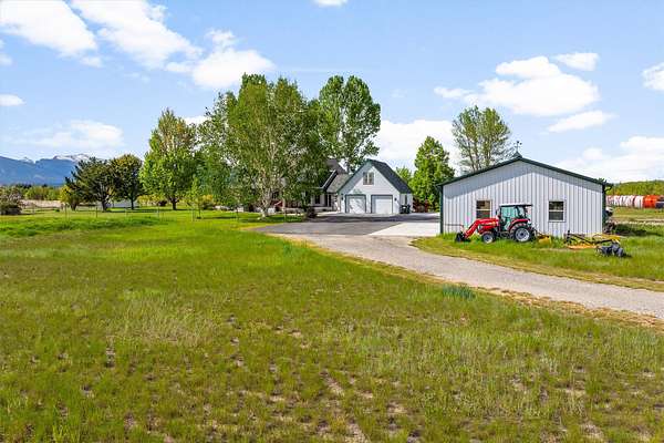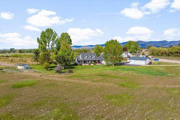 A picturesque country retreat with income potential. Discover the perfect blend of country charm and modern convenience with this stunning two-and-a-half-story home on 5+ irrigated acres just minutes from Hamilton. Featuring 3 bedrooms and 3 bathrooms, this well-appointed residence offers a spacious primary suite on the main level, a partially finished basement with a workout/dance room, and a completely renovated gourmet kitchen-ideal for culinary enthusiasts. Step outside to a beautiful patio area where you can soak in the breathtaking views of the Bitterroot Mountain Range while enjoying Montana's fresh air and wide-open spaces. The property also includes a large 2 car attached garage with a bonus room above, providing extra space for guests, an office, or a hobby area. Outbuildings include large 2480 square foot office/shop, a 3 car,1200 square foot shop, a 40'x18' bus barn and an agricultural outbuilding for additional storage. The property also includes an excellent shooting range for the gun enthusiast. Beyond the home, this property boasts exceptional commercial and storage opportunities.