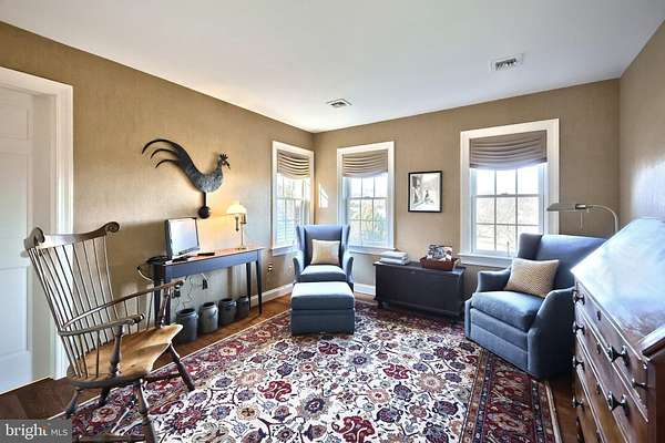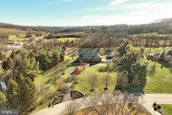 Experience the perfect blend of elegance, functionality and privacy in this custom-built brick traditional 2 story home set on 2.6 private acres. Conveniently located near shopping, dining and amenities, this property offers a tranquil retreat with every modern convenience. The quality built home features 4 BR's and 3.5 bathrooms, including a luxurious 1st floor bedroom suite with large walk-in closet. The first level also includes a formal living and dining room, spacious family room with fireplace, private office/den, and a custom designed kitchen with island and large sunroom/eating area with lots of sunshine for spectacular views. There is a large laundry room with cabinets and sink. Conveniently located 1st floor powder room. Adjacent to the kitchen and large eating area/sunroom is a screened in porch with a TV and awnings. Perfect for relaxing with beautiful landscaping with a view of the pool. Like new hardwood flooring throughout. The second story offers 3 additional bedrooms, 2 bathrooms, and an expansive closet area with built-ins, and additional attic storage. Vaulted ceilings, crown molding, trey ceilings, and professionally designed interiors reflect meticulous attention to detail throughout the home. The home also includes a whole house generator. Lower level is unfinished with a gym area featuring rubberized flooring and professional grade exercise equipment. There is a 3 car attached heated garage with stairway to lower level for ease of storing outside furniture. Detached custom built carriage house with wood stove and a separate area for lawn equipment and tools. Lots of storage on the second level for more storage. This carriage house was built by Edward H. Nace Restoration Co. Enjoy the in-ground heated pool that was all redone with Gunite in 2022. The patio overlooking the pool offers a private setting and perfectly located for more entertaining and relaxing. You will appreciate the professionally landscaped lawn and the long private driveway leading to a stunning entrance. The home was custom built by Richard J. Smith & Sons giving lots of thought to design and quality for an unmatched living experience.