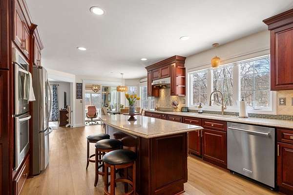 Welcome home to this exceptional 4-bed, 2.5 bath Colonial privately set on over 1.5 wooded acres in desirable Rehoboth. Step inside to a bright, open foyer that sets the tone the moment you enter. With an abundance of living space, this home offers the perfect balance of comfort and privacy. The sun-filled kitchen features granite countertops, large island w/ seating, and charming breakfast nook overlooking the backyard, flowing into the generous living and dining rooms. A dedicated home office w/ slider provides the perfect work-from-home space. Upstairs, the spacious primary suite offers a walk-in closet, spa-like bath w/ double vanity, soaking tub and separate shower, while 3 additional bedrooms and a full bath provide comfortable, well-balanced space. A finished walk-out lower level offers flexible bonus space for a gym, media room, or playroom. Complete w/ central air, 2-car garage, and expansive yard. Enjoy peaceful country living with room to grow.