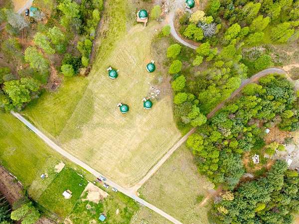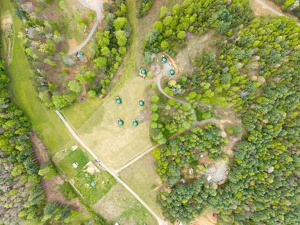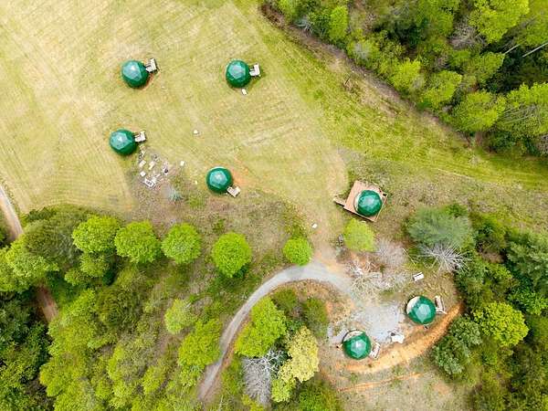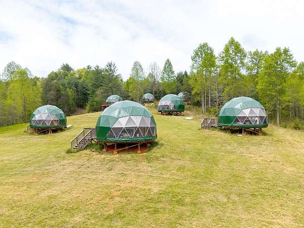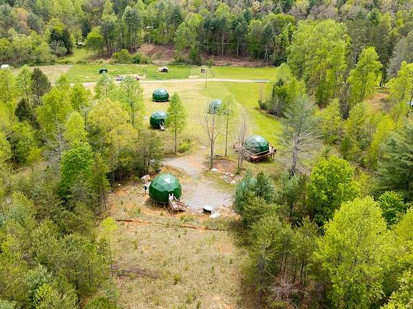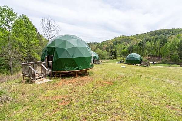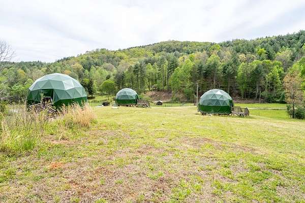 Perfect opportunity to enjoy a secluded paradise! A nature lover's dream where you can build the escape of your dreams and/or bring to life the vision of your own LUXURY GLAMPING INVESTMENT PROJECT WHICH IS READY TO BE COMPLETED. 7-unit dome erected ready to be finished. This land offers the opportunity to explore the various aspects of this unique property including multiple buildable areas, and sustainable living . The seasonal mountain views can be further enhanced by clearing additional land giving you even more opportunity to enjoy breathtaking sunrises and sunsets-all from your own private retreat. With the added value of an installed septic tank, underground electric and a shared well, it provides essential utilities saving you time and money!