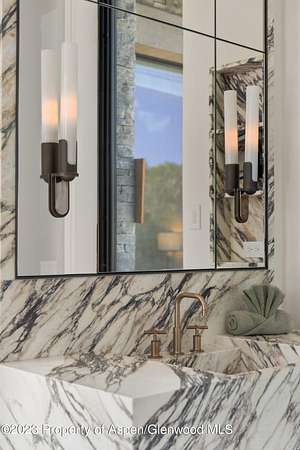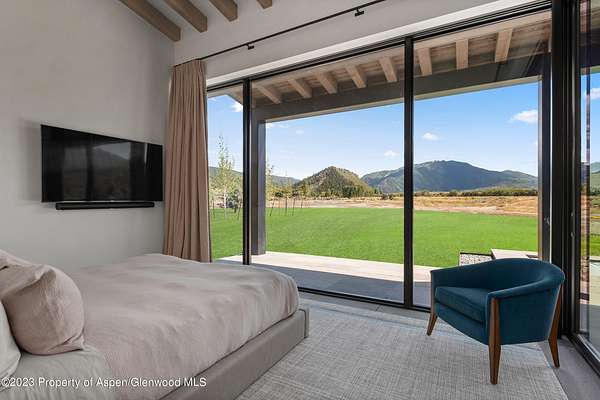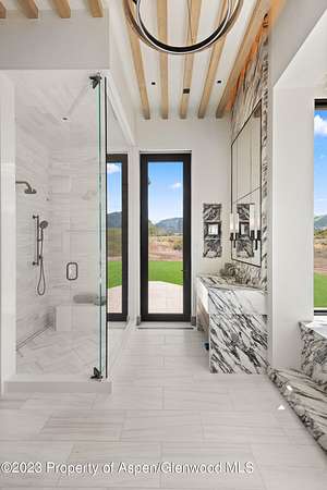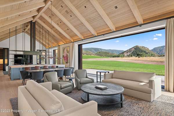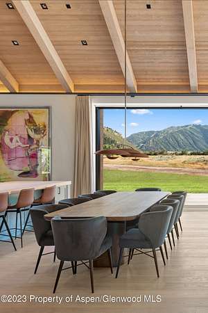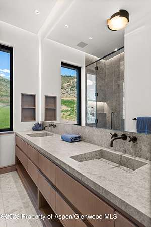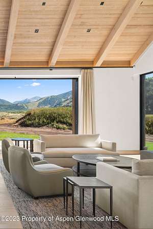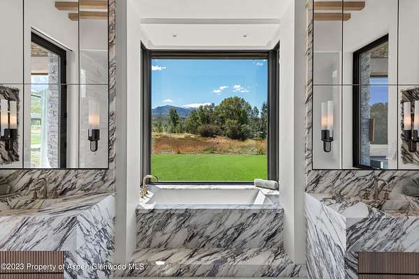 A custom-built home for the most discerning of renters. Situated on a legacy property, this bespoke home boasts soaring ceilings and panoramic views from every room. Beautifully appointed throughout, the 5,750 sq foot house features an open living space with custom furnishings and mill work, a large gourmet kitchen, and an expansive living room with a stone fireplace. There are two primary suites, both feature king size beds with luxurious linens and furnishings, custom marble slab bathrooms with separate walk-in shower and bathtub, and floor to ceiling windows that feature panoramic, uninterrupted mountain and valley views. Birch bark, stone and glass seamlessly incorporate the natural setting, while floor to ceiling glass doors provide unparalleled indoor/outdoor living.The outdoor patio and lawn include a hot tub and outdoor entertaining space to enjoy year-round. The design, views and privacy of this unique property provide everything one could desire in a luxury vacation home.