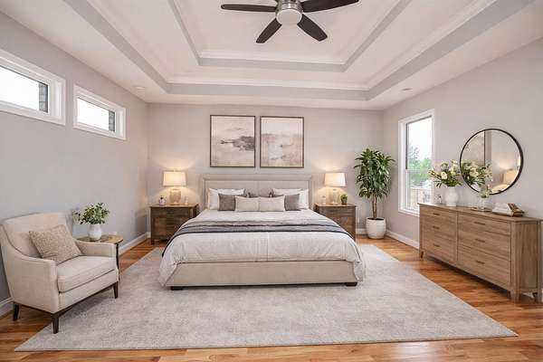- Cable Available, Ceiling Fan, Ceilings-Cathedral/Raised, Ceilings-Some 9 FT +, Ceilings-Trey, Open Floor Plan, Split Bedroom Plan, Walk in Closet