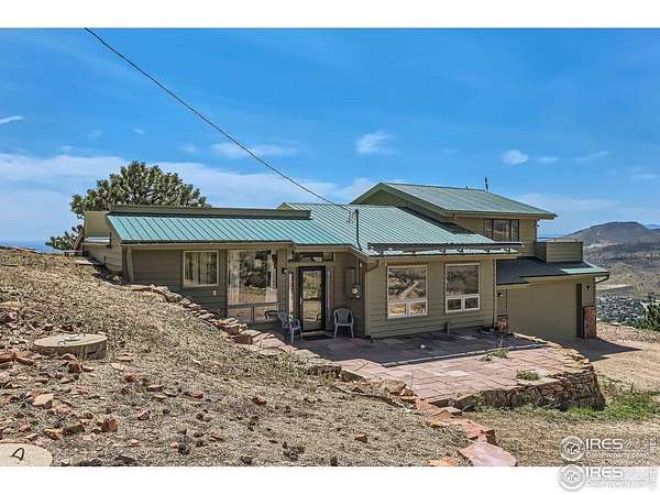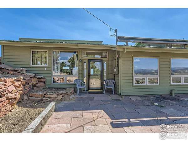 Unparalleled views and quiet privacy! This custom built home has stunning views from Loveland/Berthoud sweeping south across the plains, overlooking Lyons and all communities from Denver to Boulder, and then encompassing the foothills and the entire back range. The private road, stone pillar gate, and long driveway guarantee privacy on the +38.6 acre parcel. This well maintained property has been freshly painted inside & out. Great room concept, vaulted ceilings, and large windows. 2nd bedroom doubles as an alternative use room with gas fireplace, Retractable awning over front patio. Large finished garage with nice crawl space for additional storage. 5000 gallon water cistern for fire fighting. Class A fire rated coatings on both decks. Broadband tower array on property provides residual income