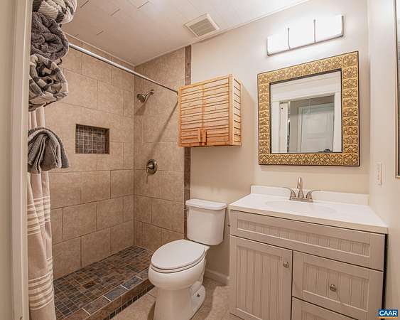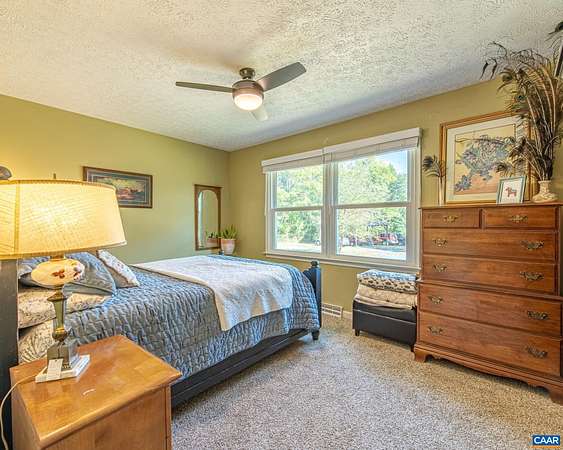 Located near the end of a quiet lane, your new escape awaits. Perfect for a farmette on 4 pastoral acres, this beautifully updated home has been lovingly renovated over time. Step inside to find an inviting living room and a bright, eat-in kitchen featuring locally sourced soapstone counters, a deep farmhouse sink, and abundant cabinetry. From here, walk out to the deck -- the ideal spot to enjoy crisp Virginia fall days while taking in peaceful, private views and seasonal mountain vistas. The spacious primary suite includes a walk-in closet and a full bath with elegant tiled details. Two additional bedrooms and a stylish hall bath with tiled shower complete the main level. Downstairs, the expansive rec/family room opens to a large patio, offering great space for entertaining or relaxing. You'll also find a fourth bedroom (currently used as an artist's studio), a laundry/mudroom, utility room, and a beautifully appointed full bath with both a soaking tub and separate shower with charming tile accents. Step outside to, enjoy established gardens, a barn with additional lean-to storage, and a detached wooden carport. All this, just 15 minutes from Charlottesville -- the perfect blend of country retreat and modern convenience.