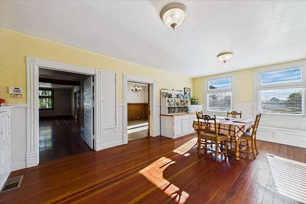 Step back in time to this classic Fortuna property set on approximately 2.6 acres. The 2,567 square foot home offers six bedrooms, two bathrooms, and a full daylight basement, blending vintage character with everyday functionality. The fully fenced portion of the lot provides defined space for a variety of uses, with additional land beyond. Served by city water and sewer and equipped with a backup generator, the property also includes a detached two car garage and a large barn, offering flexibility for storage, projects, or other needs. The acreage supports a range of uses, including space for animals, gardening, fruit trees, and outdoor activities. A unique opportunity to own a spacious parcel in town with a home that reflects a bygone era and a setting that feels like the country.