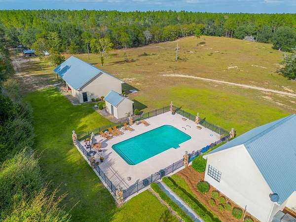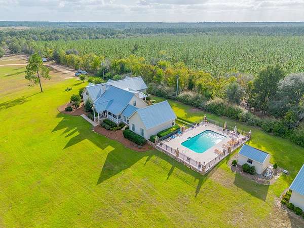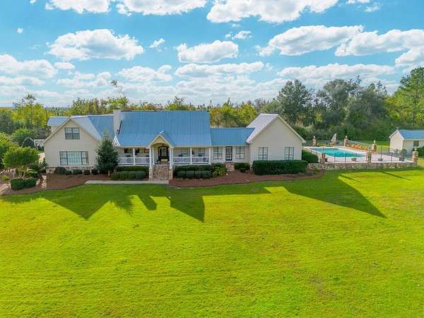 150 acres of rolling countryside, complete with a 4 bedroom, 4 bath home offering over 4,600 sq ft of living space. Sitting on the highest point of rolling land, the home boasts breathtaking views and complete seclusion just minutes from town. Expansive pastureland for livestock, a tranquil pond, wooded acreage perfect for hunting or recreation, a large pool, barn and chicken coop for your homestead lifestyle. Inside you will find a mix of luxury finishes with rustic compliments that make the home warm and inviting and perfect for entertaining. The kitchen is an open concept to the breakfast area with a large island. Dine in the formal dining room and enjoy large den. The main suite and additioanl guest bath are on the main floor. A cozy seating area offers comfortable living just off the main suite. Other features include large walk-in pantry and large laundry room. 3 bedrooms/2 baths upstairs are spacious with open balcony sitting area. Come see how this home will meet your needs.