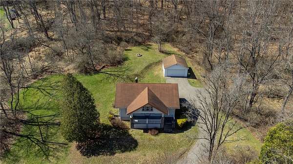 If you are looking for privacy in North Allegheny Schools this may be the home for you! Tucked away on 13.69 acres in the North Allegheny School District, find this charming mechanically updated Cape Cod with two car detached garage, phenomenal view surrounded by mature trees and a babbling brook. Plus a great yard for play. There is a 1.4 acre lot that, if perc-ed, could possibly be built on. Enter from the stone-pillared covered front porch boasting T&G mahogany ceiling and through the storm door and charming original wood 8 panel glass entry door. Be impressed by all original woodwork, including window frames and sills, cased entries, and baseboard. Windows, furnace, and AC have all been updated Roof age unknown but has been updated . First floor offers spacious living room and dining room with hardwood, bedroom and either office/den or bedroom 4. Updated bath has granite top white vanity and laminate LVP wood like floor. Eat in Kitchen has area for breakfast bar and features white cabinets and updated lighting. Take wood steps upstairs and find eve storage. Hardwood floors and freshly painted grey bedrooms. From the back, find covered back porch with a nice usable backyard that boasts a firepit. Lots of parking found in the expanded driveway with turnaround. Spacious basement comes fully equiped with washer/dryer and laundry tub. New glass block windows. All this, plus one year home warranty!