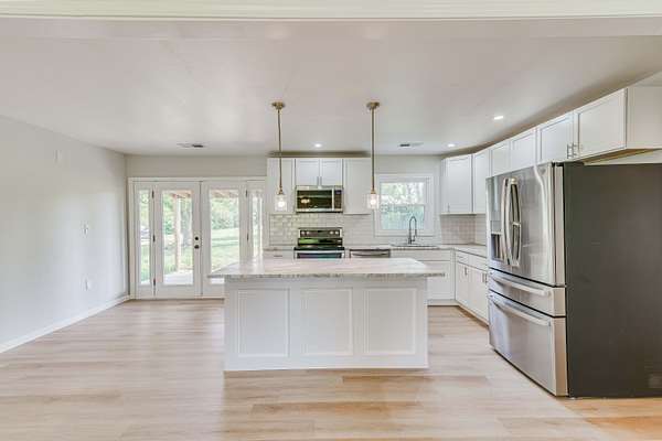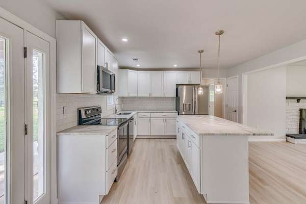 Welcome to your private slice of Kentucky countryside! Situated on 5 gorgeous acres, this completely updated 4-bedroom, 3-bathroom ranch offers the perfect mix of modern comfort and rural charm. Whether you're looking for a quiet homestead, small hobby farm, or simply room to spread out-this property has it all. Step inside to discover a beautifully remodeled open-concept layout featuring luxury vinyl plank flooring throughout, granite countertops, brand-new kitchen cabinets, and stylish new fixtures. The kitchen flows seamlessly into the spacious living area, ideal for entertaining or cozy nights in. All three full bathrooms have been tastefully upgraded with tile surrounds, new vanities, and designer finishes that give a fresh, modern feel. Enjoy peace of mind with a brand-new roof, new chimney cap, new energy-efficient windows, and countless other recent improvements. Outside, you'll fall in love with the natural beauty: -5 flat, usable acres - Private stocked farm pond -Outdoor fire pit area -Multiple barns - great for animals, equipment, or storage This property is a rare find in Nicholasville-offering space, privacy, and convenience, just minutes to everything