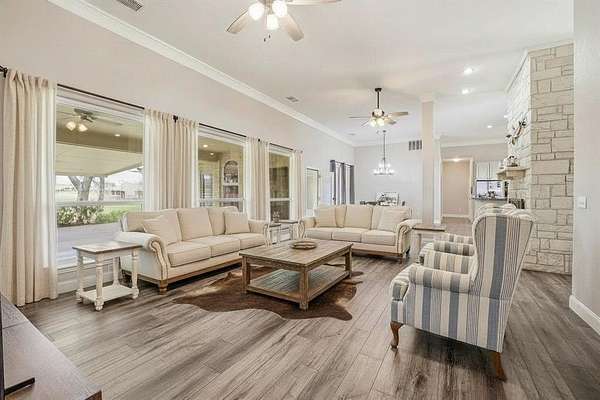 Welcome to your own private Texas retreat, where luxury, functionality & wide-open space come together seamlessly. Situated behind a gated entrance, this beautifully updated 5-bedroom, 3-bath home offers over 4,342 sq ft of thoughtfully designed living space, perfect for everyday comfort & entertaining. From the moment you arrive, the striking stone exterior, metal roof & inviting front porch sets the tone. Inside, soaring ceilings, abundant natural light & a stunning floor-to-ceiling stone fireplace anchor the open-concept living area. Fresh paint, updated flooring, modern fixtures & upgraded hardware create a clean, contemporary feel while maintaining warm, rustic charm. The kitchen is the heart of the home, featuring granite countertops, a large island, stainless steel appliances & ample cabinetry. A water filtration system & water softener add convenience. Spacious bedrooms offer comfort, while the primary suite provides a relaxing retreat & include a one-of-a-kind closet. Upgrades include spray foam insulation, dual-zoned HVAC, updated electrical components & ceiling fans for year-round efficiency. The wood-burning fireplace is plumbed for propane. Step outside to a large, covered patio overlooking scenic acreage, perfect for relaxing or entertaining under Texas sunsets. The insulated shop features commercial roll-up doors, LED lighting & covered overhang for equipment. This property is ready for agricultural or homestead living with livestock barns, irrigated garden, lawn sprinkler system & rich pastureland ideal for grazing or hay production. A stocked pond with solar powered well, 2 additional water wells, two septic systems & a RV hookup provide exceptional functionality. A second home had been gutted & is ready for renovation, offers incredible potential for a guest house or rental. Located just outside Granbury near shopping, dining & lake access, and within sought-after Tolar ISD. Bring your horses, livestock & Texas dreams...this one truly has it all.
