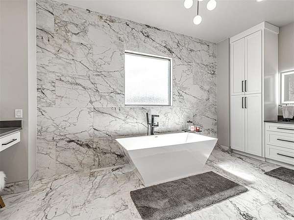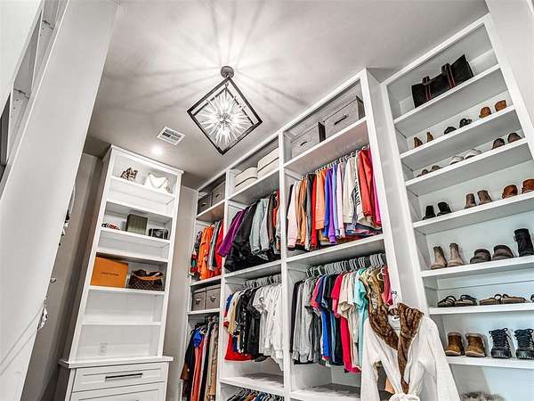 Each guest bedroom is comfortably sized, with two offering walk-in closets and one featuring its own private ensuite. The primary suite is a true retreat, showcasing dual vanities, a soaking tub, an oversized walk-in shower, and a massive walk-in closet with built-in storage for days.