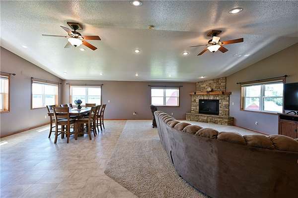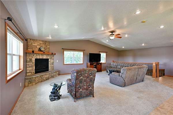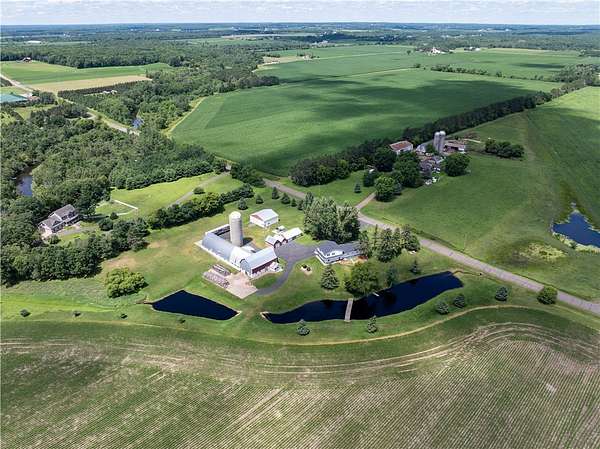 Discover the perfect mix of comfort and country living with this well-maintained 4BR/3BA home on 5 peaceful acres. The beautifully landscaped yard features vibrant flower gardens, an asphalt driveway, and a private pond with a dock and charming bridge. Inside, the open-concept design offers a spacious living area with a cozy fireplace, perfect for relaxing or entertaining. For those needing exceptional storage or workspace, this property is a standout! It includes a 32x80 ft insulated shop with in-floor heating and a 33x44 ft lofted mancave/entertainment area, additional storage includes a 40x44 ft pole shed, a 12x22 ft garage shed, a 24x40 ft shed, a 15x22 ft shed. Whether you're a hobbyist, collector, or business owner there's ample space for all your needs. This peaceful retreat is perfect for those seeking space, comfort, and functionality all in a beautiful country setting. Located in a great recreational area(atv) & only minutes from Rice Lake. New house roof Oct 2024. Additional 20.85 acres of buildable Ag land potentially available.