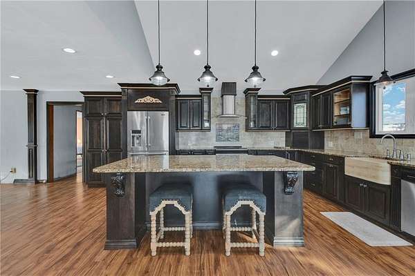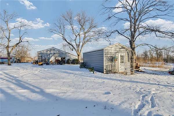 Charming Ranch on 10 Acres Within East Lynne City Limits! Experience country living with city convenience in this beautifully maintained ranch home situated on 10 partially wooded acres. Enjoy the freedom of rural life - horses, chickens, and livestock are all grandfathered in for this property, a rare find inside city limits! The home features a new roof (2024) with Class 3 shingles, new furnace and A/C, and basement improvements completed by Roberts Basement for added peace of mind. The inviting living room includes a wood stove, creating a cozy atmosphere for gatherings. The kitchen was fully remodeled in 2018-2019. Complete custom kitchen, featuring custom cabinetry, soft-close drawers and doors, as well as a professionally hand-painted tile backsplash - a beautiful, one-of-a-kind detail. Walkout access from the kitchen to enjoy the large deck for entertaining, watching the sunrise or the cool of the evening after a long day. Outside, you'll find a 40x80 barn with horse stalls, an additional 15x30 utility shed (new in spring 2024) providing extra storage or workspace, and exterior hydrants installed for convenient watering of livestock, gardens, or landscaping. The property also includes a large pond that holds water year-round and could easily be stocked with fish. Corner posts are already in place, making it simple to rebuild fencing for livestock or property boundaries. Surrounded by mature trees and beautiful landscaping, this property offers the perfect blend of functionality, privacy, and natural beauty - ideal for those looking for a hobby farm, private retreat, or forever home. This property will be available for showings beginning November 12th! Don't miss your opportunity to own this rare 10-acre gem within East Lynne city. Price is adjusted for the most recent home improvements to include the newly installed furnace, air conditioning unit. As well as newly renovated deck off back of home & foundation repairs made. One-of-a-kind acreage home