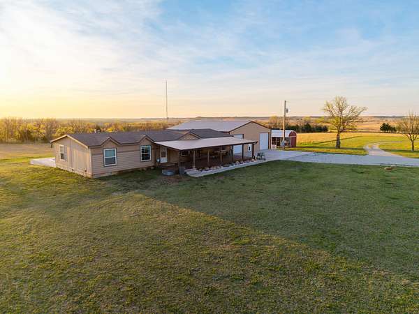 This 34.77+/- acre property in Cowley County offers a well-rounded setup with two manufactured homes, shops, and quality acreage suited for a variety of uses! Whether you are looking for a country residence, multi-family setup, or a place to run livestock and enjoy the outdoors, this property checks all the boxes! A long gravel driveway lined with mature trees welcomes you in and leads to the heart of the property. The main house features 3 bedrooms and 2 bathrooms with a beautiful interior, a spacious living room, and a large kitchen that makes it ideal for everyday living or entertaining. A sunroom overlooks the in-ground pool, creating a perfect spot to relax year-round. A connected garage adds convenience and functionality. Just east of the main house sits a large shop building with three automatic garage doors. The lower level offers ample space for equipment, vehicles, or a workshop, while the upper level provides excellent storage. Nearby, the second home adds even more flexibility for guests, rental income, or extended family. Behind that home is an additional shop with even more room for equipment and storage. An in-ground storm shelter is centrally located between the buildings for peace of mind. The improvements are set on a beautiful 34.77+/- acres with cross fencing already in place, making it ready for livestock. A pond within the fenced area adds to the functionality and appeal. The surrounding timber provides excellent habitat for whitetail deer and small game, offering solid hunting opportunities right out your back door. Conveniently located just 13+/- miles northeast of Arkansas City and 15+/- miles southeast of Winfield, this property offers the perfect balance of country living with easy access to nearby towns. Properties with this combination of homes, shops, acreage, and recreational appeal do not come along often! All showings are by appointment only. If you would like more information or would like to schedule a private viewing please contact Drew Palmer at (620) 660-2355 .