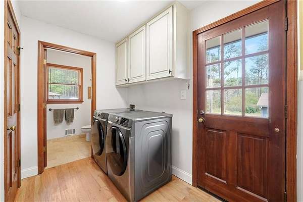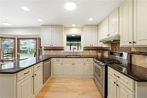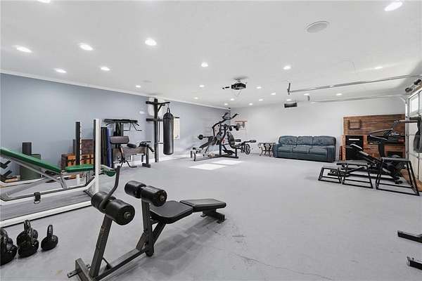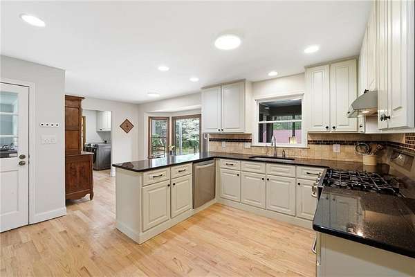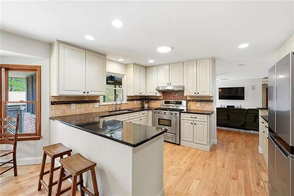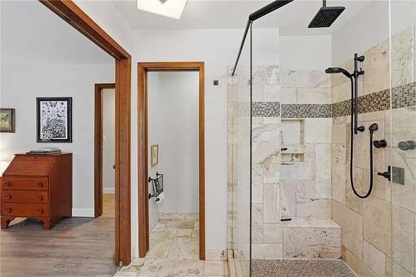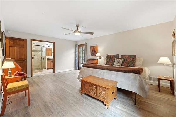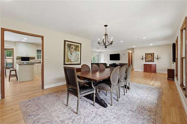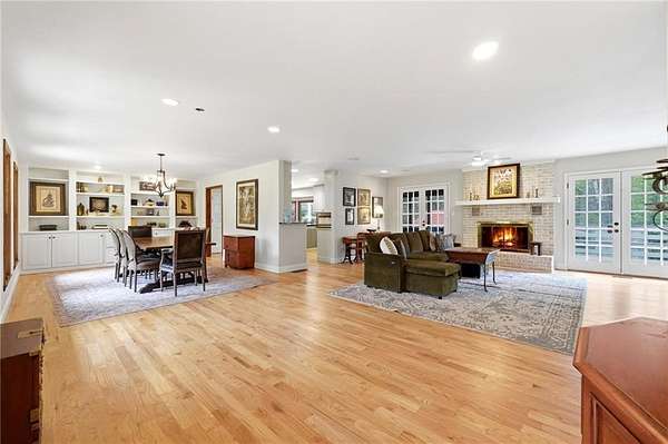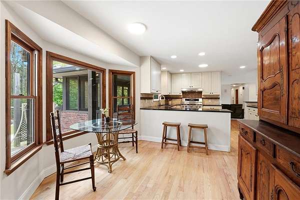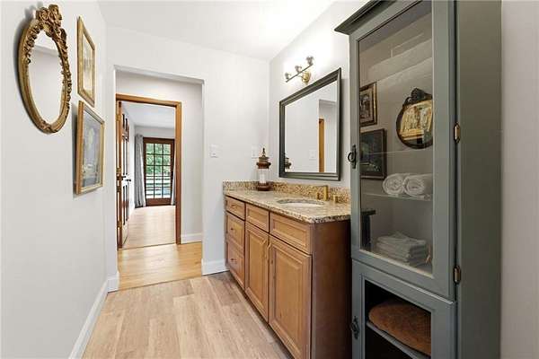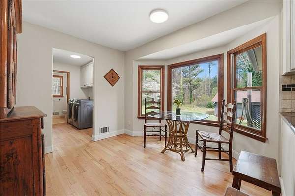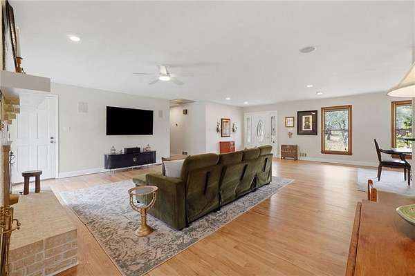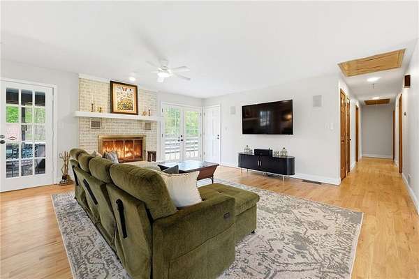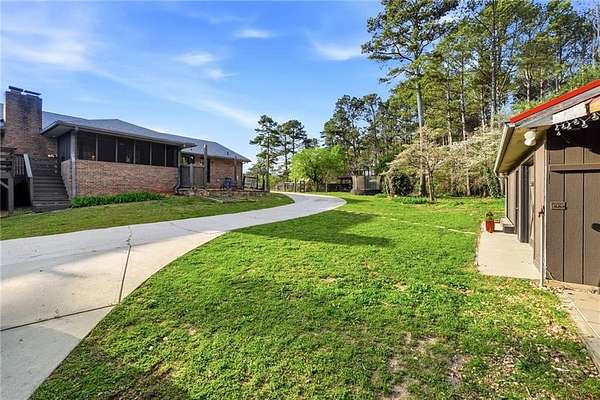 Tucked away on 5 private acres, this is the kind of property you don't just buy-you settle into. The winding trails, fenced land, and lush landscaping create a setting that feels worlds away, while the gunite saltwater pool (with new pump and salt cell), relaxing poolside cabana, and party deck set the stage for slow summer days and effortless entertaining. All the big deals are done-brand new roof (2025), brand new LVP flooring in the bedrooms, refinished solid oak flooring in main area, HVAC replaced in 2023. Inside, the home strikes that perfect balance-modern updates where you want them, character where it matters. A brick fireplace anchors the living space, the screen porch invites you to linger a little longer, and the oversized dining area with built-ins is made for gathering. The kitchen and breakfast nook are equally inviting, with granite countertops, a gas range, top of the line dishwasher and room to truly live in. The primary suite offers space to unwind, complete with a large tiled walk-in shower, while upstairs bedrooms provide comfort and privacy for family or guests. And then there's the lower level-fully finished and full of opportunity. A private in-law suite with its own entrance, kitchenette, and bath makes multi-generational living seamless. Add in a second living area, office with hardwired ethernet, storage room, a secondary garage with workshop, additional laundry hookup, and RV parking area... and you have a home that adapts to your life. There is even an additional 700+ sqft finished outbuilding with surround sound and projector which serves as a great home gym, media room, or guest space. Private. Functional. Designed for living well-both inside and out.