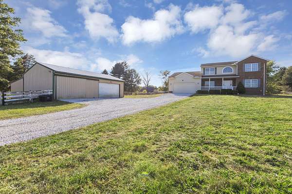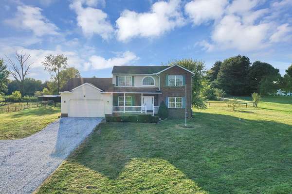 Your country retreat awaits! This beautiful 5 bedroom, 5 bath custom home sits on a true working mini farm with all the space you need for family, entertaining, and livestock. A long gravel driveway leads to the home, where you'll immediately notice the rich oak floors and detailed woodwork. The main floor offers a private owner's suite with jetted tub, walk-in closet, and an attached office, plus a formal dining room, open family room, eat-in area, and spacious kitchen with granite counters, ALL NEW STAINLESS STEEL APPLIANCES, and NEW KITCHEN TILE. A 3-season room with paver flooring is perfect for relaxing year-round. Upstairs you'll find three additional bedrooms, two with private baths, a large loft, and generous closet space. The finished basement adds a rec room with wood flooring, storage areas, and a fifth bedroom. Recent updates include a NEW FURNACE, NEW AC, TANKLESS WATER HEATER, ALL NEW STAINLESS STEEL APPLIANCES, NEW KITCHEN TILE, NEW OUTLETS, SWITCHES & LIGHTS, NEW GARAGE SENSORS, FULLY PAINTED INTERIOR, NEW CARPET, NEW SHOWER SURROUNDS, and NEW TOILETS. The property is fully equipped for animals or 4H projects with multiple fenced areas, a fire ring, and several barns and outbuildings. A 24x40 pole barn with utilities and lean-to, a 24x32 barn with 3 indoor stalls, and another barn featuring 6 covered outdoor stalls with gates/fencing provide everything needed for horses, cattle, or a business venture. Paddocks, pastures, and a pond complete the setting. Attached 2-car garage for everyday convenience. Located just minutes from Heath and a short drive to Columbus, this gentleman's farm offers endless opportunities - whether you're looking for a homestead, hobby farm, or income-producing property.