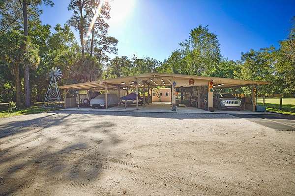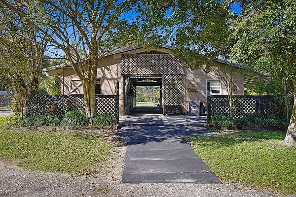 Amazing, unique and meticulously maintained 15 acre family compound, artist retreat or equestrian facility, the options are endless. Two parcels, 10 acres with 3/2 updated modular home, 2022 roof, 2021 a/c, 3 electric meters, 2 wells 2021, 2 barns, 11 paddocks , approx 1 acre jump field, approx 1 acre pasture turnout, art studio/office, several storage buildings & carports to cover and accommodate your personal vehicles, toys and trailers/Rv's with H20 & elect. hookups. The 5 acres comes with man cave, huge carport with workshop and storage building, livestock shelter and 3 huge paddocks. This 15 acre compound has 3 electric meters, underground electric, 3 wells and a maintained Pond with a lazy river. Beautiful & relaxing, a must see property.