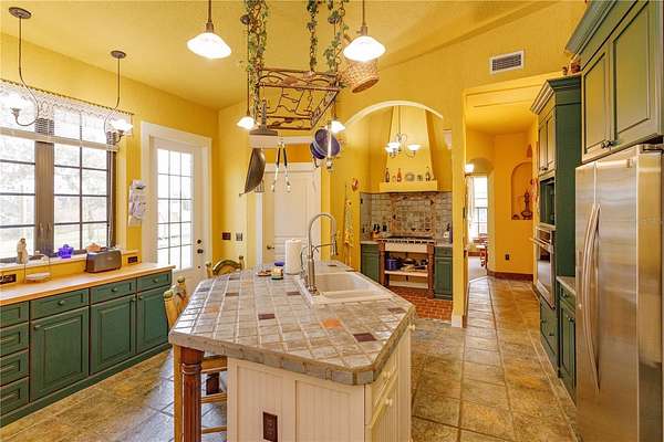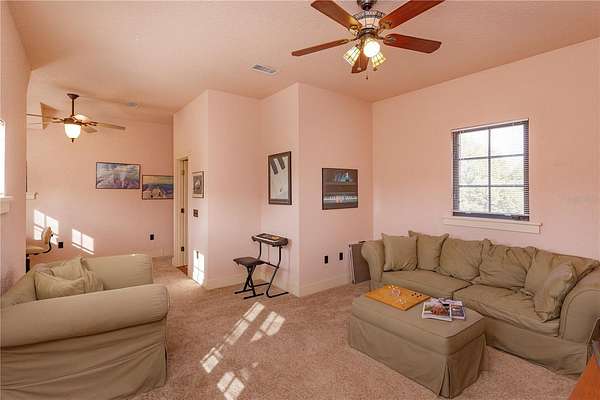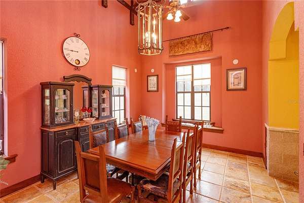 Discover timeless elegance and exceptional privacy in this custom-built 3-bedroom, 3-bath Tuscan-inspired home situated on 13.08 breathtaking waterfront acres. Enjoy serene lake frontage with private access, abundant wildlife, and endless possibilities for personal or commercial use. Step inside to a warm, inviting interior featuring an eat-in kitchen equipped with stainless steel appliances, a separate formal dining room, and a dual-sided gas fireplace shared with the spacious family room. A beautifully crafted wine closet adds a touch of luxury and charm. The primary suite is conveniently located on the main floor, accompanied by a second bedroom. Upstairs, a versatile bonus room doubles as a third bedroom and includes its own full bath-perfect for guest or extended family. Additional storage is thoughtfully tucked under the staircase. Outdoor living is a true delight with a relaxing patio overlooking the lake-an ideal spot to watch the sandhill cranes and enjoy peaceful sunsets. The property is equipped with irrigation, and the roof was replaced in 2018, offering added convenience and peace of mind. With over 13 acres of usable space, this property presents limitless opportunities: create a multi-family retreat, develop a charming bed-and-breakfast, or transform it into an unforgettable wedding venue. The potential is truly unmatched. Experience the beauty, privacy, and versatility of the remarkable lakeside estate. Do not wait to schedule a showing as this is a rare property and your dream home awaits.