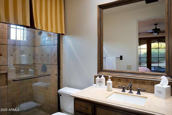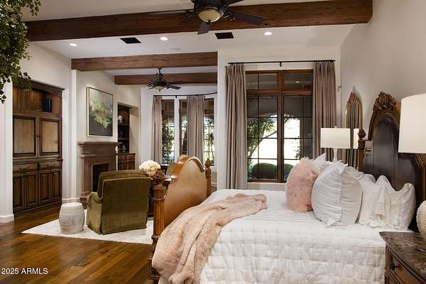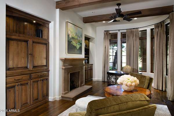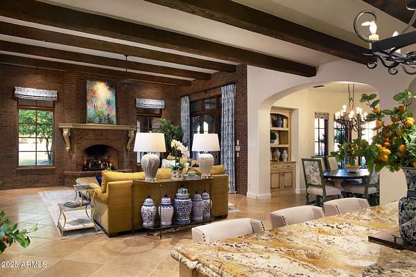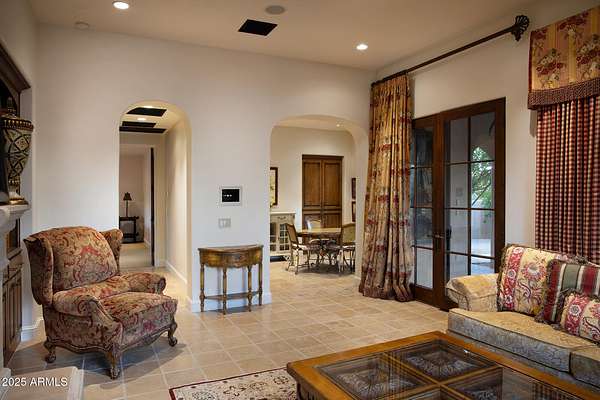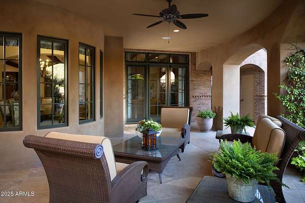 Situated in Prado, an exclusive gated community of 4+ acre private estates, rests this timeless Mediterranean masterpiece with mountain views. Built by Calvis Wyant, the estate features a 8,148/sf main house with 5 bedrooms plus a lavish 1,421/sf 2 bedroom guest house for a total of 9,711/sf of living space. The impeccable grounds include a pool and spa with a ramada, putting & 85 yd chipping green , large grass yard, pickle ball & basketball court that could be easily be converted to pickle ball courts. Car lovers will appreciate the 7 car garage with room for additional garages or RV storage. The homes lavish finishes and features include, formal living and dining room, family room, gourmet kitchen, breakfast room, office, theater, game room, primary suite with sitting room, spa like... bath & huge closets, fitness/sauna room, wine room, wet bar, beamed ceilings, wood and stone floors, 6 fireplaces and much, much more. Walking distance to shopping and restaurants and 5 minutes to the 101 takes you anywhere int the valley in short time.