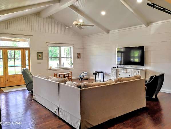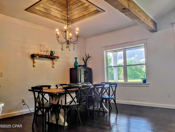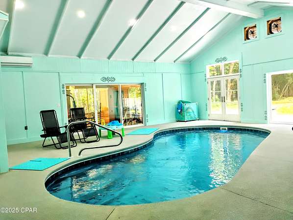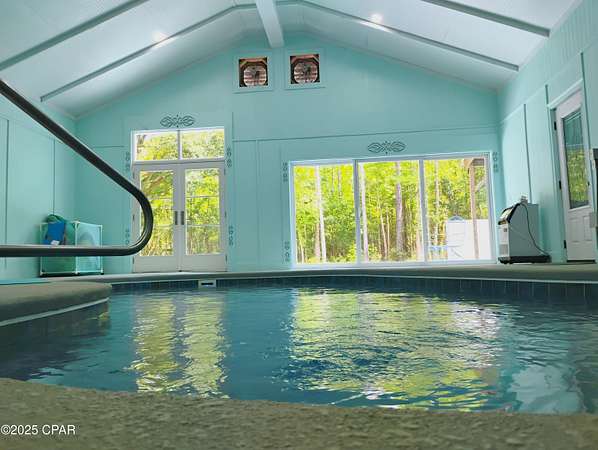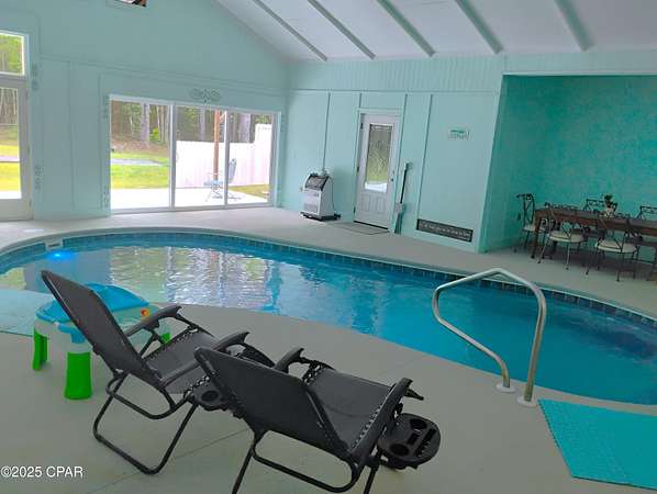 Welcome to your new retreat, a sanctuary among the oaks overlooking a stocked pond from a custom built home on 10+ acres in the Reedy Creek subdivison of Holmes County. Observe the deer, birds, and other native wildlife while listening to the calming sounds of nature from the comfort of your front porch, or relax year round in your heated, indoor pool. This sturdy four bedroom, three bathroom home features many custom touches including custom tray ceilings, vaulted ceilings, shiplap walls, antique fixtures and hardware, custom sliding barn doors, hardwood floors, custom tile, a huge kitchen island and a farmhouse sink to name a few. There's plenty of room for a large family, with two primary bedroom suites that each open to the enclosed pool area. You'll have plenty of storage space with plenty of custom kitchen cabinets and a large walk in pantry. Enjoy a family game night in the bonus recreation room, or sink into your favorite chair in the private study located adjacent to the main primary bedroom. If you love the outdoors, you'll appreciate the mature hardwoods on the property, or the chance to explore many of the local springs, creeks, lakes, or the world's most beautiful beaches not far away. This home was lovingly built as a forever home, and has been well cared for, but plans have changed and it's time to pass it on to new owners. If 10+ acres is not enough, more acreage may be purchased. Make an appointment to see this home now; you'll be captivated by the allure.