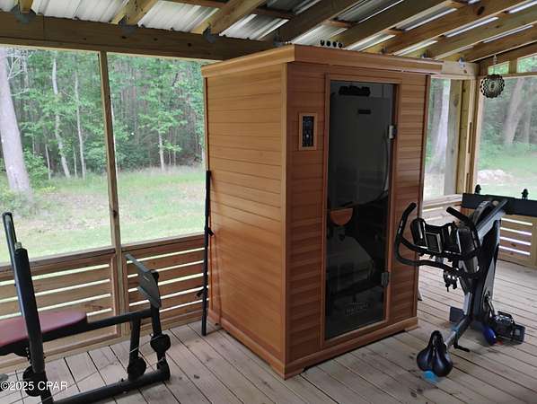 - Additional Living Quarters, Beamed Ceilings, High Ceilings, In Law Floorplan, Kitchen Island, Pantry, Sauna, Split Bedrooms, Tray Ceilings, Vaulted Ceilings