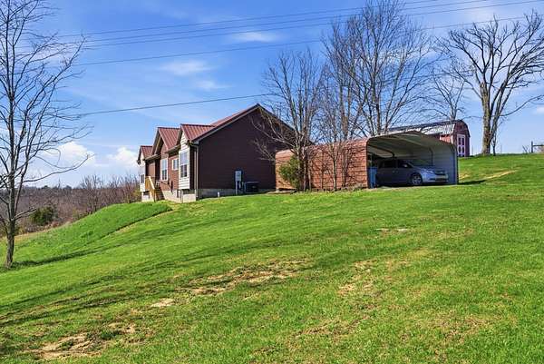 SELLER OFFERING $4,000.00 TOWARDS CLOSING COST. Looking for an escape from the hustle and bustle of everyday? This charming home with five plus acres of land is just waiting for you. With a NEW HVAC IN 2025, three bedrooms and two full baths. This home offers a huge kitchen with plenty of cabinets and counter space. Enjoy meals at the wonderful eat in bar, with a separate dining room for all your holiday entertaining. The extra large living room has plenty of space for extra seating. The tall ceilings in this home are accommodated by beautiful crown molding. Master suite offers a huge master bath with a walk in shower. Relax in the extra large soaking tub next to the fireplace. There is also a spacious walk in master closet. The extra large laundry room offers plenty of room for storage with many upper and lower cabinets and a soaking sink and located next to the other bedrooms. Relax on the back deck that offers privacy in all directions and enjoy plenty of wildlife with an abundance of deer that are seen often in the back yard. There is a 26x22 detached 2 car carport, also offering a 12 X 32 storage shed for extra storage with an updated metal roof. Experience many gorgeous sunsets with the views this property has to offer. This home is conveniently located with under a 10 minute commute to the interstate, 15 minutes to the Ark Encounter and Williamstown Lake, 20 minutes to TMMK and Georgetown, and 40 minutes to Cincinnati.