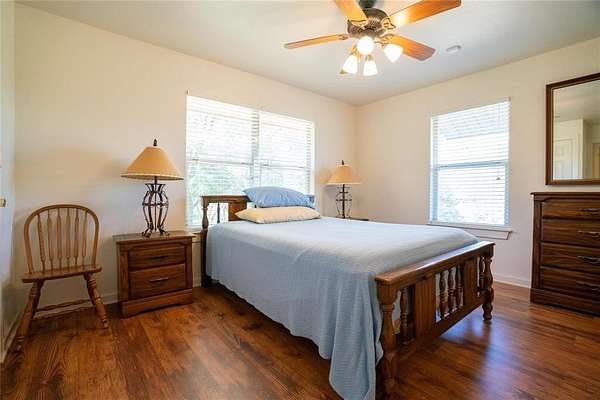 Located in the heart of Lampasas County, just 8.5 miles northwest of Lometa, this 665-acre ranch offers a rare mix of natural beauty, privacy, and well-planned improvements. With over 3,550 feet of county road frontage off CR 2699, the property is easily accessible yet feels worlds away. The land showcases rolling Hill Country terrain, mature oak groves, open pastures, and two stocked lakes, plus a natural spring that flows year-round. Historic features like original wagon tracks and a century-old homestead site add authentic Texas character. A custom 2,038 sq. ft. residence with 5 bedrooms and 3 baths anchors the property. Designed for both comfort and entertaining, the home includes spacious living areas and outdoor access. Additional improvements include a large workshop and a separate storage building--ideal for tools, ranch equipment, and operational use. A private well serves the home and improvements. Recreational appeal is strong, with whitetail deer, turkey, and other native game supported by ideal habitat. Multiple blinds, feeders, and water sources are already in place, making this a turnkey setup for hunting and outdoor enjoyment. The property is well-suited for cattle, wildlife management, or a private family compound. Less than 30 minutes to Lampasas and under 2 hours from Austin, Waco, and San Antonio, Wagon Trail Ranch offers a rare combination of seclusion and convenience in one of Central Texas' most desirable regions.