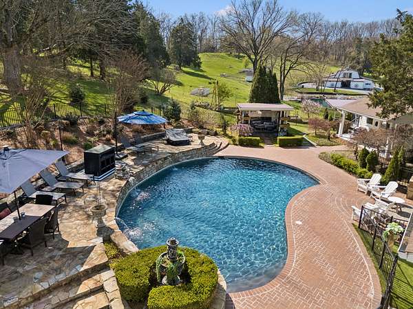 Discover a slice of paradise just north of Nashville at TGL Farms. This exquisite 15+ acre property in Hendersonville offers an unparalleled blend of luxury, privacy, and convenience. Perfectly situated, it provides an idyllic escape while remaining close to the vibrant life of downtown Nashville and BNA Airport. Behind the gated private entry you will find the main residence, a lovingly maintained home with stylish design and character, an income producing guest house with first class entertainment and equestrian facilities. Full perimeter fencing, providing both security and aesthetic beauty. Newly installed magnolia trees and green giant evergreen trees line the property perimeter, creating a serene and private atmosphere. Navigate the property effortlessly with well-maintained asphalt and aggregate roads. Beautiful resort-style pool, surrounded by lush landscaping, outdoor fireplace and cooking area. Stocked pond featuring a charming sitting dock—perfect for quiet moments or family gatherings. The original barn has been beautifully renovated to provide a unique entertaining space, complete with HVAC for year-round comfort, three European horse stalls and tack room. The lower barn offers 5 stalls with automatic waterers, electric, hay storage, sand riding ring and two separate pastures with run-ins. A concrete parking pad for a tour bus includes dual 50amp shore power, perfect for a traveling artist or RV owners. Brand-new Generac diesel generator ensures you’ll never be left without power. This remarkable estate offers the tranquility of country living, greenbelt qualifying acreage for low taxes, all while being just a stone’s throw away from the excitement and amenities of Nashville. For more info visit TGLFarms.com