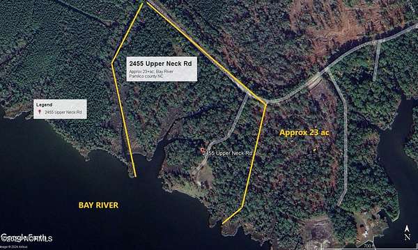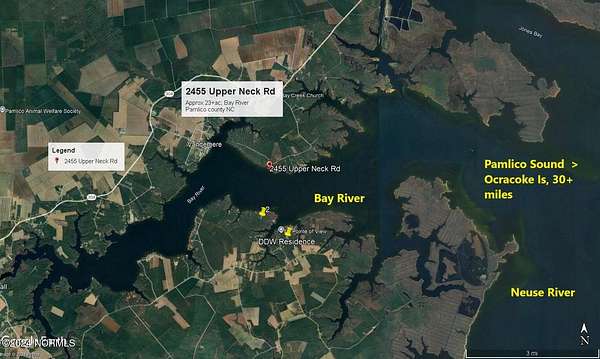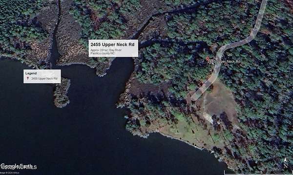 Unrestricted Waterfront Acreage; big water frontage in excess of 1200'. Beautiful views to the south and southwest of Bay River. Installed 2 bdrm septic, well, partial clearing on two areas of property. Ownership also includes creekbottom coming into property and small boat basin within the property. Potential of subdivision of property. One of the few large, unrestricted waterfront parcels for sale in this portion of coastal NC. Bay River and Pamlico county are part of the Inner Banks of NC. Great hunting, waterfowl, fishing, crabbing, boating and sailing. and shrimping in this area. 4' miles to Pamlico Sound, Neuse River and ICW.