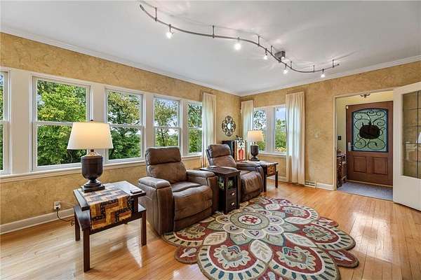 Absolutely unique and stunning, this 3-bedroom, 3-bathroom home with a 2-stall garage offers views in every direction. No expense was spared in its design and updates—granite countertops, rich wood floors, marble kitchen walls, exposed copper ductwork, Biesanz Stone accents, and not one but two fireplaces set the tone throughout. The chef’s kitchen features a Viking refrigerator and stove, while the 2-year-old metal roof adds long-lasting durability. The primary suite is nothing short of amazing, complete with a spa-like bathroom featuring a large walk-in shower. Step outside to find a yard filled with established perennials that has even been featured on the Winona Garden Tours. Backing up to state forest land, this property combines privacy, natural beauty, and timeless craftsmanship all in one.