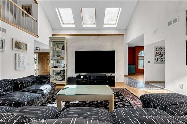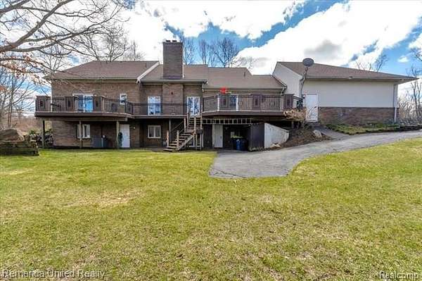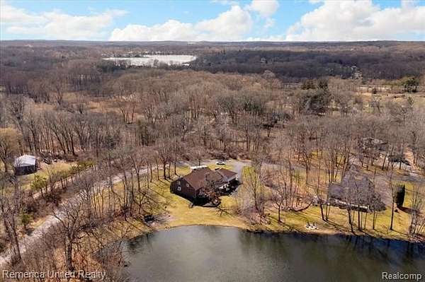 Welcome to Brighton Township—where every morning begins with coffee on your expansive deck, overlooking your own private 14-acre lake. Enjoy peaceful waterfront living with an “up north” feel, as wildlife drifts by and nature becomes part of your daily routine. This beautifully custom-built home offers 4 bedrooms, 6 bathrooms, over 3,200 square feet above grade, and more than 5,200 square feet of total finished living space. Thoughtfully designed and ahead of its time, the home features a sprawling open-concept floor plan with soaring 20+ foot cathedral ceilings, creating a light-filled and inviting atmosphere ideal for both everyday living and entertaining. The spacious kitchen is truly the heart of the home—complete with a large walk-in pantry. The main-floor primary suite offers comfort and convenience, featuring two separate walk-in closets, a spa-like bath with a jetted tub and walk-in shower, and easy access to the oversized laundry room complete with a laundry chute from the second floor. Also on the main level, the formal dining room makes a bold and elegant statement, showcasing a rare wallpaper design found in only one other place in the world, The Grand Hotel on Mackinac Island. Upstairs, you’ll find two generously sized bedrooms, each with charming cubbies perfect for storage or children’s play areas. Both rooms include dedicated study spaces or office nooks with having a private vanity and toilet area, connected by a shared shower space. The finished lower level adds approximately 2,000 square feet of additional living space. Highlights include a full kitchen, workout room, two private offices, a spacious workshop, and a locker room-style bathroom with an attached sauna. With three walkouts and a potential green room, this level offers endless possibilities. This one-of-a-kind waterfront estate blends luxury, comfort, and natural beauty, offering a rare opportunity to own your own slice of paradise in Brighton Township.
