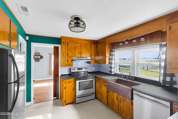 Seller offering $5,000 use as you choose. Welcome to this two bedroom country farmhouse, situated on just under two acres. The outside of the home boasts a two car garage, two mostly fenced in grass fields with self-watering containers, as well as a barn with dividers for any animals of your choosing. There is also a treehouse located at the back of the property behind a creek. Upon entering the home you are welcomed into the living room with plenty of natural light. This farmhouse kitchen also has all stainless steel appliances and a cozy dining room with a wood burning stove. The two bedrooms are situated on the opposite side of the home with a full bathroom in-between them. Be sure to check out this property if are interested in having some farm animals and a garden or if you just love living in the county.