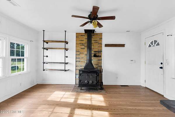 From Maysville, make a left on 4th street. In approximately 1 mile turn left onto Gibson Bridge Road, then right onto White Oak River Road. Home is 3 miles down on the left.