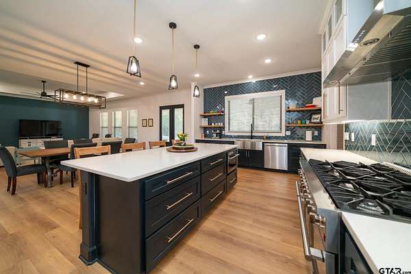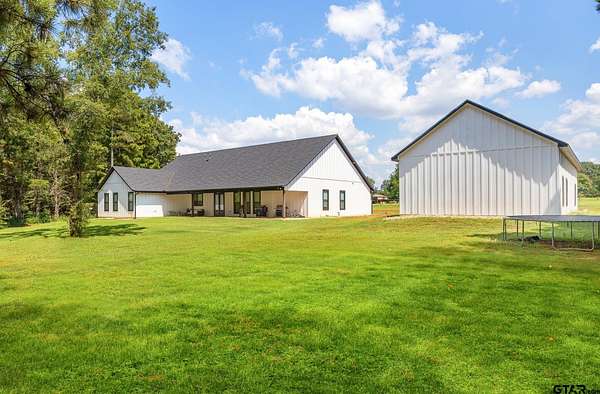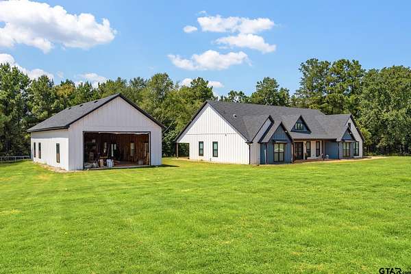This magnificent modern ranch-style home on 2.55 acres offering abundant space both indoor and outdoor living and entertainment It features a spacious split and open floor plan four generously sized bedrooms and 2.5 bathrooms. The bright airy kitchen boasts high-end, an eight-burner top cook stove, and side-by-side refrigerator freezer. The butler pantry provides ample storage for groceries and additional appliances The master suite offers a luxurious retreat with a soaking tub, separate walk-in shower, and an expansive closet two built chests. The office, conveniently near the front entrance, ensures easy access. A 1500-square-foot shop provides ample space for a boat, a work area, and the beginnings of a bathroom. With too many features to list, this exceptional property is a must--schedule showing today and make this your forever home.