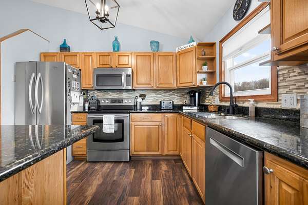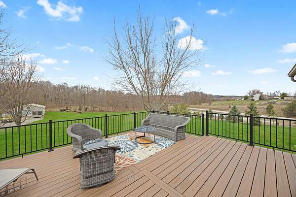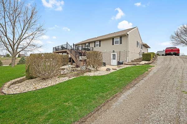 Welcome to country living on 2.72 acres in Jefferson Township! This updated, well-maintained 5-bedroom, 2.5-bath, 2880 square foot home features comfortable living space on the first floor, plus a fully finished walk-out basement. The main level has 3 bedrooms/2 baths and the lower level includes two bedrooms, a half bath, and plenty of storage and ideal for guests, multi-generational living, or flexible use of space. A standout feature is the 30x40 insulated and heated pole barn, complete with custom maple cabinetry perfect for a workshop, hobbies, or additional storage. The attached 2-car garage is also finished and heated for year-round convenience. Thoughtful upgrades throughout include granite countertops in the kitchen, wide trim, and solid six-panel doors. Major mechanical updates provide peace of mind: windows replaced in 2018 (with warranty), roof in 2012, furnace updated in 2022, tank-less water heater in 2020, and water softener in 2023. The owner's suite also features an updated shower surround in 2023. Built in 1996, the home offers a functional layout with a bright, welcoming feel throughout. Step outside to enjoy the expansive yard--perfect for relaxing, entertaining, or outdoor activities. A Trex deck and a concrete patio with hot tub hookup creates ideal spaces to unwind and take in the scenic surroundings. The front porch is Trex too. Located in the Benjamin Logan School District, this property delivers the best of rural living with easy access to Bellefontaine and nearby amenities. Don't miss this opportunity to own a versatile property offering space, updates, and functionality. Call to schedule your private showing today!