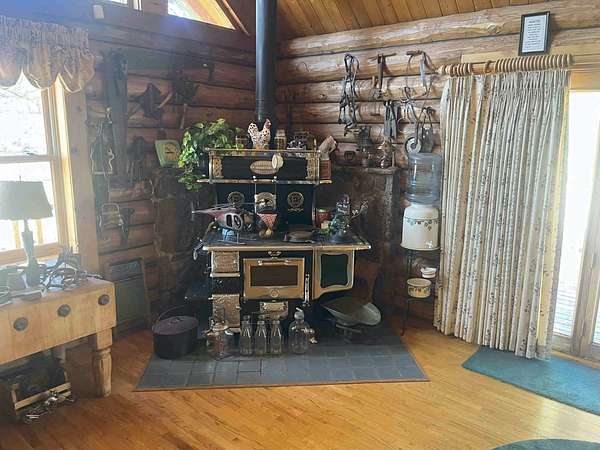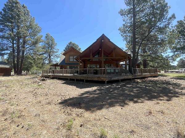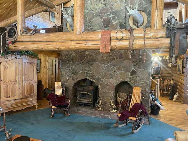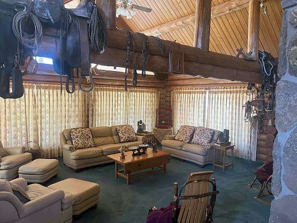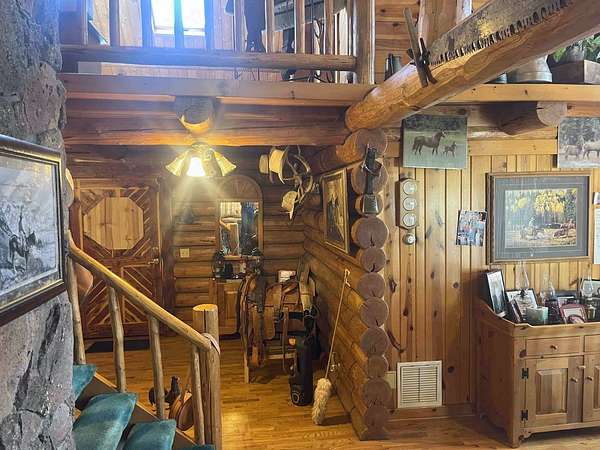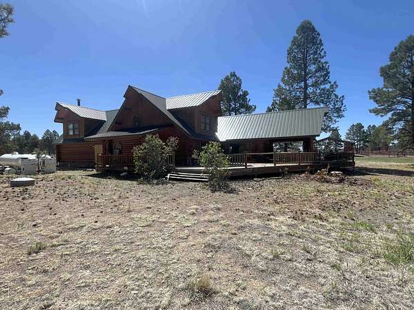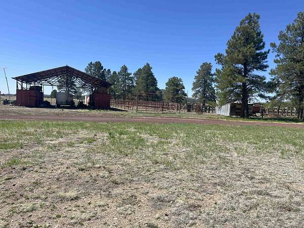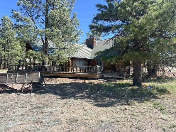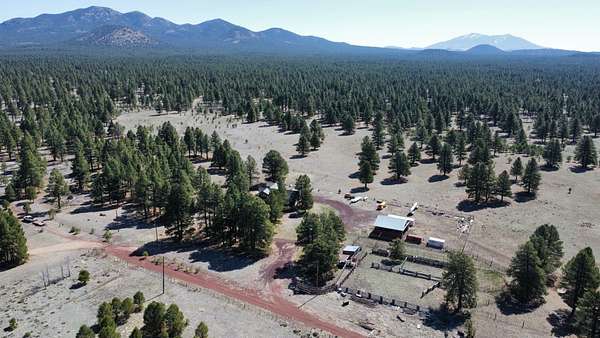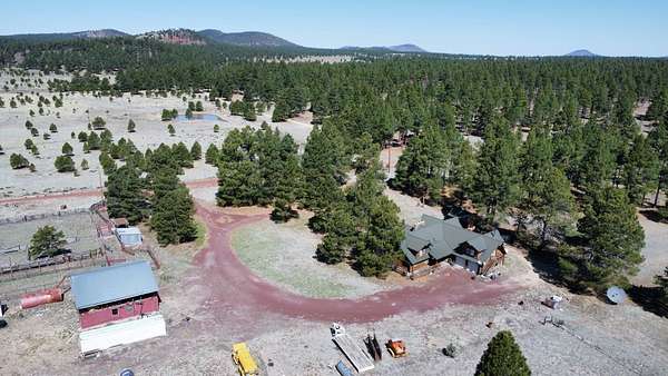 The Buggy Wheel Ranch is 22 miles west of Flagstaff and eight miles east of Williams. Access from I-40 is from the Pittman Valley Road Exit (Exit #171) and by taking paved Buggy Wheel Ranch Road (County Road #74) one mile to the property. The ranch's 446.8 acres borders Kaibab National Forest on three sides. Topography is level to gently rolling being in Pitman Valley with elevations of 6,926' to 6,995'. Vegetation consists of open meadow grassland with intermixed ponderosa pine. Improvements include the main cabin: a two story log cabin that is 3,900 s.f. with 1,600 s.f. of covered porches and attached 728 s.f. two car garage all covered with a metal roof. The home has four bedrooms and 3.5 bathrooms, fireplaces on both levels. There is a 224 s.f. storage and well house building nearby the main cabin. The Caretake's Home: 1,080 s.f. with 576 s.f. covered porch. The home is log constructed with a metal roof and has four bedrooms and two bathrooms. The Hunting Cabin: Built around an older trailer, addition is wood frame construction with wood floor, one bedroom and one bathroom. Barn & Corrals: 1,760 s.f. pipe pole construction and metal roof, two 40' shipping containers are on each side, one container was formerly a bunkhouse with a kitchen and bathroom. Corrals are log fencing on railroad ties, has a set of scales. There are 2 wells on this property with water levels reported at less than 100'. The Buggy Wheel Ranch's 446.8 acres is one of the largest private land parcels left in the Flagstaff-Williams region. Views of the San Francisco Peaks, Bill Williams Mountain and Sitgreaves Mountain are phenomenal throughout the property. The land is very usable throughout having easy gently rolling topography. Elk, deer, antelope, wild turkeys and other wildlife are abundant.