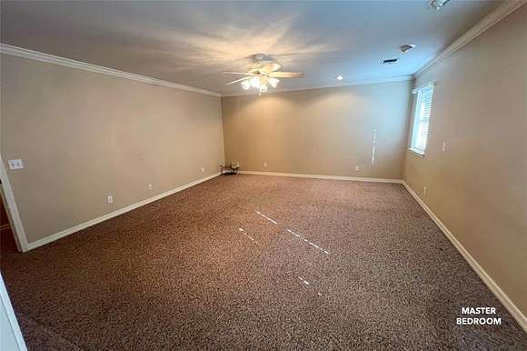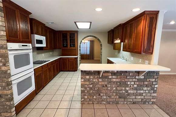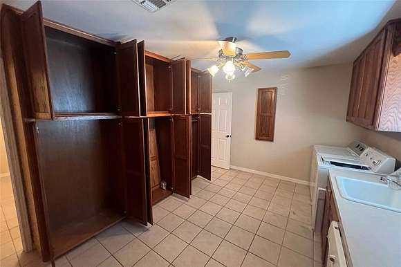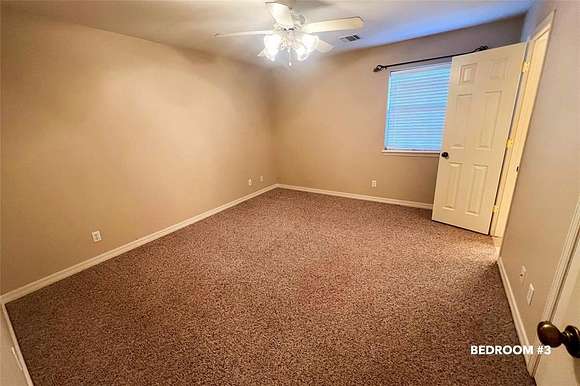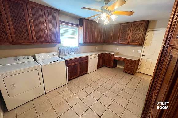 HOME DETAILS: This 3,064 sq ft brick home was built in 2001, with only one owner. It has a metal roof and geo-thermal heating and cooling system; spray foamed rafters and batt insulated ceilings and walls make for low electric bills. City water, septic. The living areas and bedrooms have berber carpet; the kitchen, utility room, office and bathrooms have ceramic tile floors. The kitchen comes complete with a Kenmore dual oven, stove top and dishwasher, plus a Whirlpool built-in microwave. The dining room is just off the kitchen. A HUGE utility room is in the back of the home, with a deep soaking sink, lots of counter space and a small built-in desk. A private office with another built-in desk is located off the utility room.
