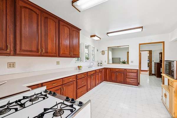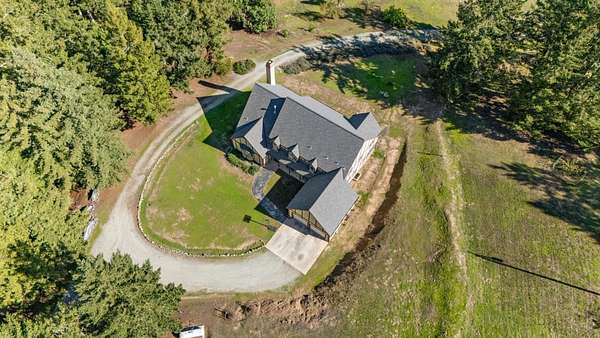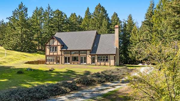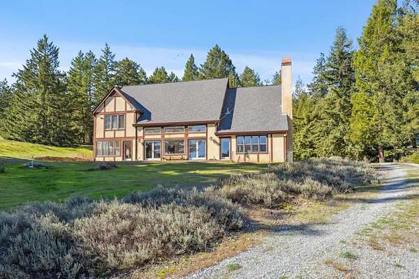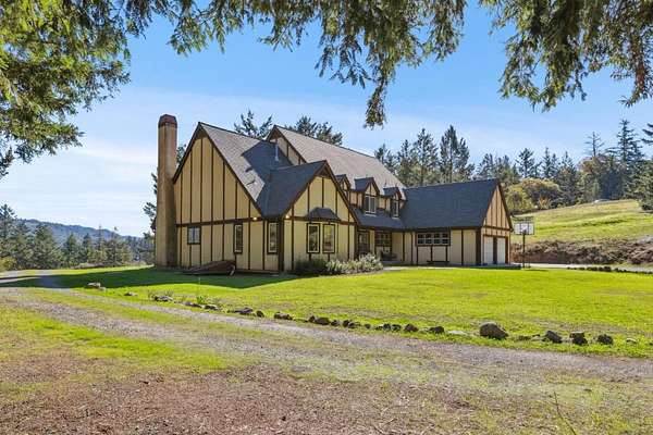 Tudor-style home built in 1993, set on over 24 acres of sunny rolling land, with serene mountain views. A long private driveway leads to the home and 2-car att. garage. Formal entry opens to the impressive formal living room with walls of windows and soaring ceilings. Kitchen, breakfast room, formal dining, sunroom, and library with custom built-ins and cozy wood-burning fireplace. Ground floor primary bedroom with walk-in closet, full bath with original copper claw-foot tub. Upstairs comprises 2nd primary with ensuite bath, 2 further bedrooms & hall bath. Rare full basement offers interesting expansion possibilities, eg. home theater, gym, bar, workshop. Outdoors - explore private trails through redwood, oak, fir & bay trees. Mature fruit trees include pear, apple, apricot, prune, avocado, orange, lemon, and peach, plus a 100-year-old Concord grape vine. Various historic outbuildings, including the original detached garage, storage barn, and bath house. Restore the iconic 100-year-old barn? Endless potential for future development - room for ADU, pool, sports court, organic farm, or vineyards and winery. The property is served by a private well & 2 springs. Rare opportunity only 20-25mins from Los Gatos & Capitola, close to Summit Store, wineries, & top-rated schools.