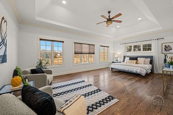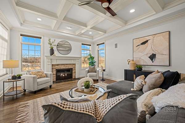 Stunning brick & stone equestrian estate with first floor master and full finished walkout basement! This beautiful residence is situated on a quiet secluded 3.5 acre lot. As soon as you walk in you are greeted with a spacious 2 story foyer. Family room offers coffered ceilings and a perfect view of your large yard framed with large windows beside the gas fireplace. Massive eat in kitchen offers island, wet bar, full overlay cabinetry with crown, and thermador appliance package. American oak hardwood flooring throughout the entire home! First floor office and master suite. Master suite offers a picturesque view every morning when you wake up. Large en suite bath with dual vanity, whirlpool, tub, and massive walk in shower. 2nd floor offers 3 large bedrooms all with their own en suite bath. In the basement you'll find a walk up wet bar, gas fireplace, full bathroom, space to make an exercise area, and loads of storage. Over 7,000 square feet of finished living space. Screened in porch, two-story deck and patio await all your outdoor entertaining. The property also features a two-story barn for all of your equestrian and gardening needs. Enjoy total privacy within just minutes of shopping and Deer Park mall. Horses are allowed! NO HOA!