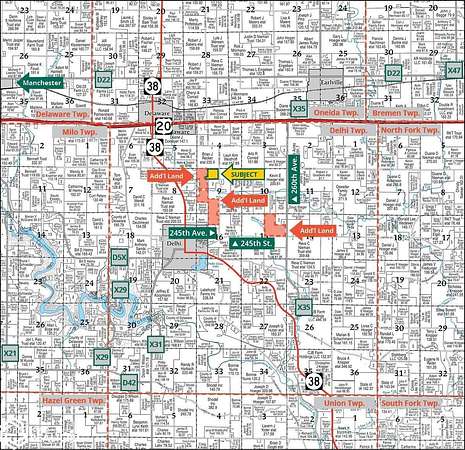 From Delhi: 1/4 mile northeast on 245th St. and 1 mile north on 245th Ave. The property is on the west side of the road.