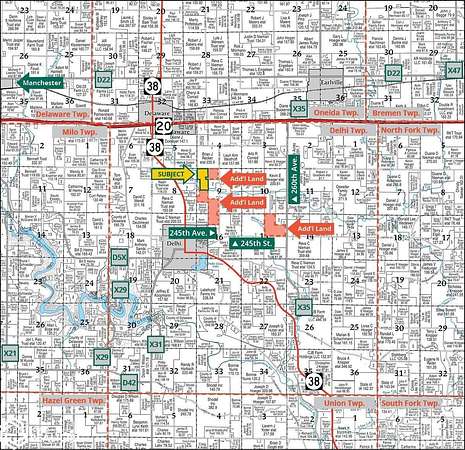 From Delhi: 1/4 mile northeast on 245th St. and 1 mile north on 245th Ave. Access to the property is through the access easement on the west side of the road.