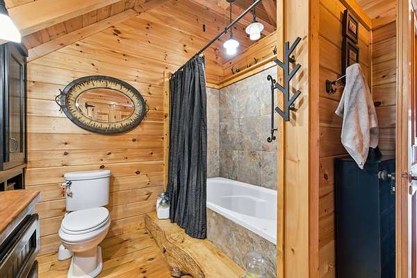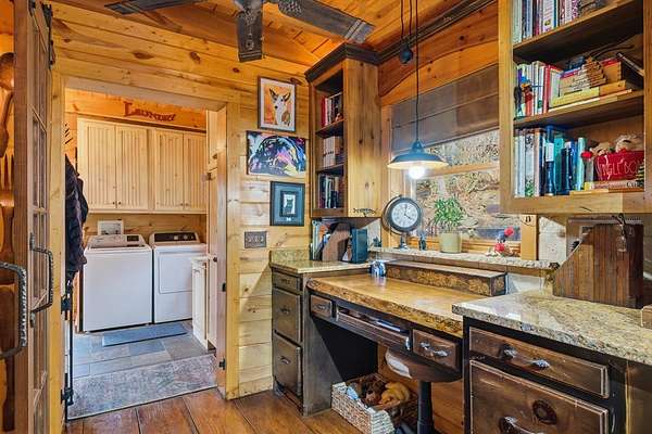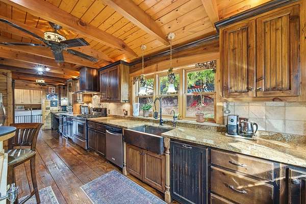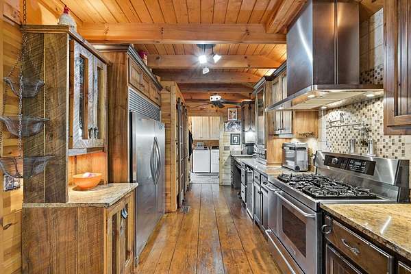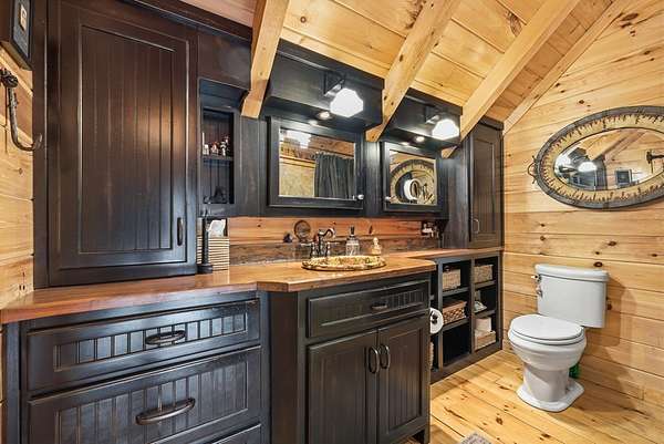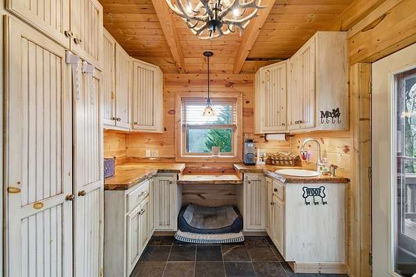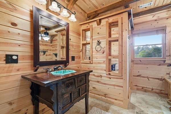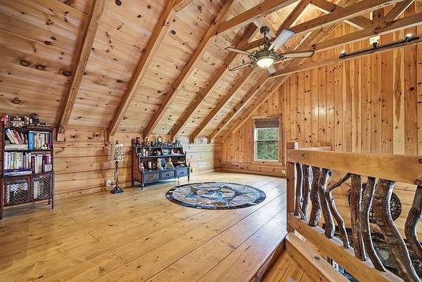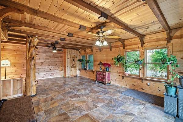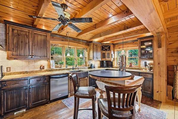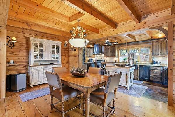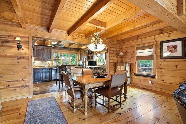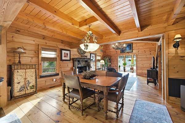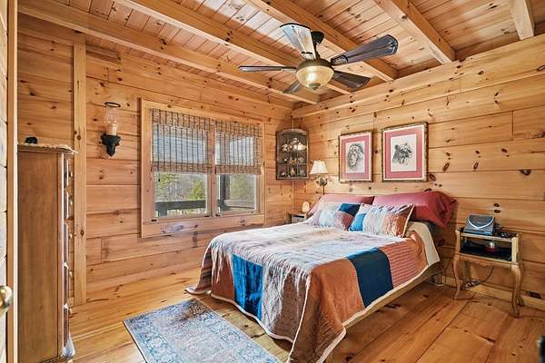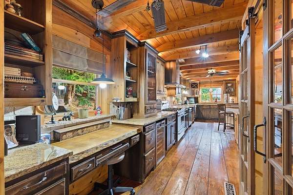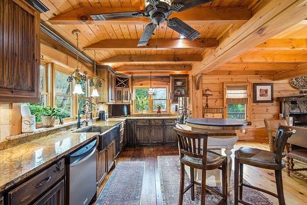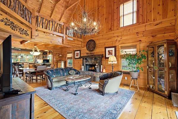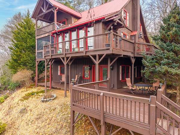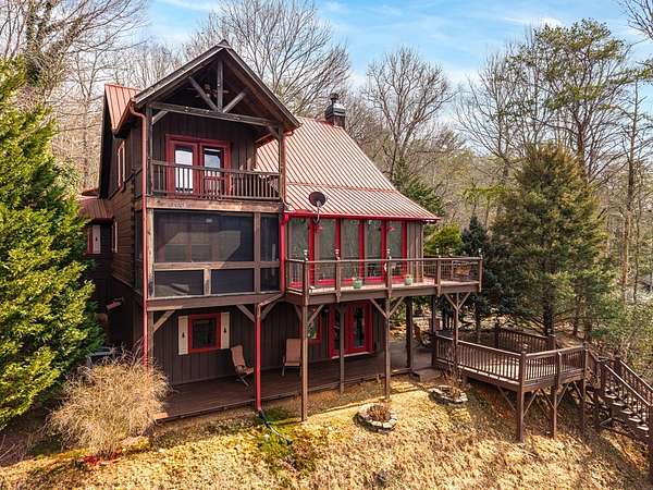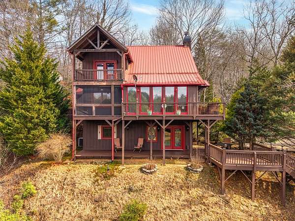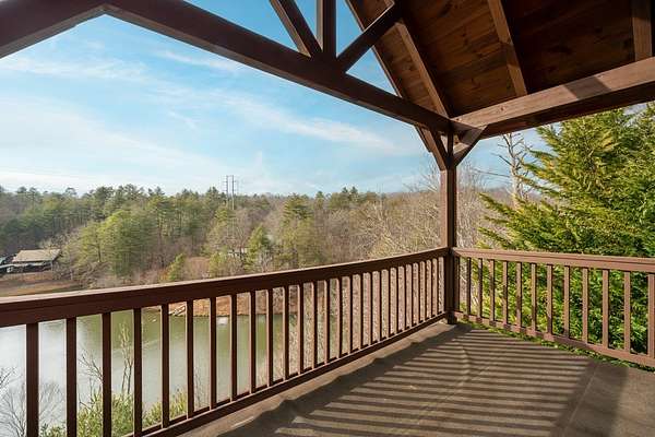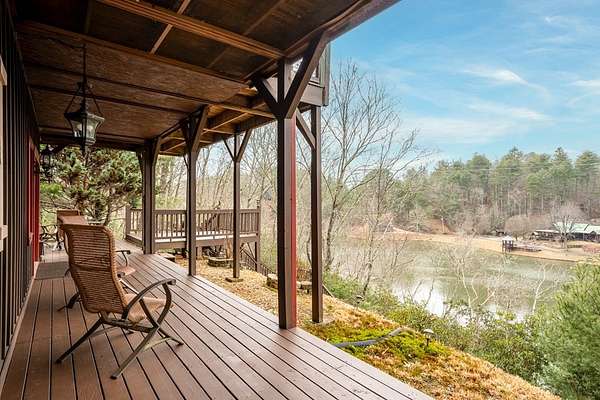 MOTIVATED SELLERS' Price Improvement plus $5,000 offered toward closing costs on this Stunning Private Lakefront Log Home Retreat — a rare opportunity to own a mountain-lake sanctuary with approximately 265+/- feet of private lake frontage. Tucked away at the end of the road on 2.08 serene acres, this beautifully maintained log home offers rare private lake ownership, tranquil seclusion, and easy year-round access with no steep mountain roads — an ideal setting for both full-time living and a luxurious second home. This distinctive three-level floor plan features 2 bedrooms, 3 full baths, a finished terrace level, and a spacious loft, allowing for flexible sleeping arrangements and effortless hosting. Thoughtfully designed with abundant storage throughout, the home delivers exceptional functionality for owners and guests alike. The gourmet kitchen is a showpiece — complete with upgraded appliances, a striking copper farmhouse sink, generous cabinetry, and a spacious pantry framed by elegant barn-door style French doors, blending rustic charm with refined mountain design. Smart storage solutions continue throughout the home, while the main-level laundry room with exterior access adds everyday convenience. Outdoor living truly shines here. Enjoy serene water views from the expansive entertaining deck, with private stairs leading down to the swim dock - for kayaking, fishing, or relaxing lakeside. For fly-fishing enthusiasts, deeded community access to the renowned Toccoa River adds another layer of recreational appeal. The gorgeous walkout terrace level, complete with a separate entrance, full bath, and ample closet space, offers versatility as a guest suite or in-law quarters. A two-car garage, generous parking on both upper and lower driveways, easily accommodates multiple vehicles. Impeccably maintained and upgraded throughout, this is an extraordinary opportunity — just minutes from downtown Blue Ridge dining, shopping, and year-round outdoor adventure!!
