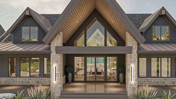 Modern mountain elegance meets panoramic North Georgia mountain views in this to-be-built custom home. Designed to showcase the scenery from every angle, this new construction blends contemporary style with classic mountain charm. Dramatic rooflines, timber-accented gables, and glass-framed living spaces create a striking first impression. Inside, cathedral ceilings connect the open-concept great room, dining, and kitchen, where walls of glass frame long-range and Atlanta skyline views. The kitchen is a true centerpiece with two oversized islands, stylish cabinetry, and a walk-in pantry ideal for entertaining. The main floor features two bedrooms, including a vaulted owner's suite with a luxury bath, plus a guest suite for privacy. The terrace level adds approx. 1,266 finished sq ft with two bedrooms, full bath, and large recreation room, plus a two-car drive-under basement garage and unfinished workshop. This listing is priced for a modified version featuring a drive-under basement garage instead of the detached garage, breezeway, and side porch shown in the photos. Exterior materials include metal roofing on the front porch only and stone limited to the columns. Buyers may choose to build the original plan or make custom changes as upgrades. Positioned on one of the community's premier lots, the homesite delivers wide long-range mountain views that open dramatically once cleared. Buyers can personalize layouts, finishes, and features to create a one-of-a-kind mountain retreat in the gated luxury community of Falling Waters near Jasper and Ellijay.Renderings are representative only. Staged interior images/renderings do not show actual furnishings, dcor, or materials. If you love the finishes, ask about available options at your construction appointment. Terrain and satellite imagery are for reference only and not a survey.Build time is approximately 12 months after contract