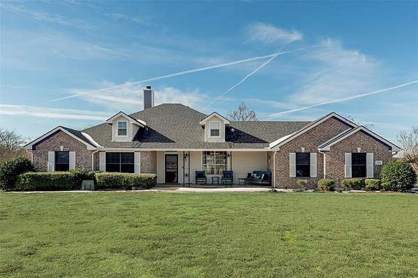 This incredible ranch style home offers country living just minutes from town on a prime cul-de-sac lot in Rockwall County with NO HOA. Nestled on over 1.8 acres of space, privacy, and convenience, all within a short distance of downtown Fate. You will feel welcome as soon as you walk in. Home has 4 bedrooms, 2 bathrooms, and approximately 2,600 square feet of living space. Also features a secondary living space with a bedroom on the other side of this home, great multipurpose area. The open-concept kitchen is a chef's delight, featuring granite countertops, stainless steel appliances, a generous island, and a seamless flow into the living room, complete with a cozy wood-burning fireplace. A separate dining room enhances the flexibility for daily living and entertaining. The oversized combination laundry and pantry room connects the kitchen to a converted garage, providing ample storage and added functionality. The spacious primary suite promises relaxation with a double vanity, garden tub, separate shower, and a walk-in closet designed for optimal organization. Step outside to a serene setting perfect for summer evenings, featuring a pool and covered back patio that overlook expansive acreage and stunning sunsets. Parking is ample with a 2-car carport with storage and a separate 1-car carport. Also has a 13x22 workshop offers room for hobbies, lawn equipment, or extra storage needs. A few updates include: HVAC and ductwork replacement, spray-foam attic insulation, roof replacement and patio cover.