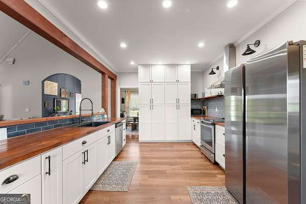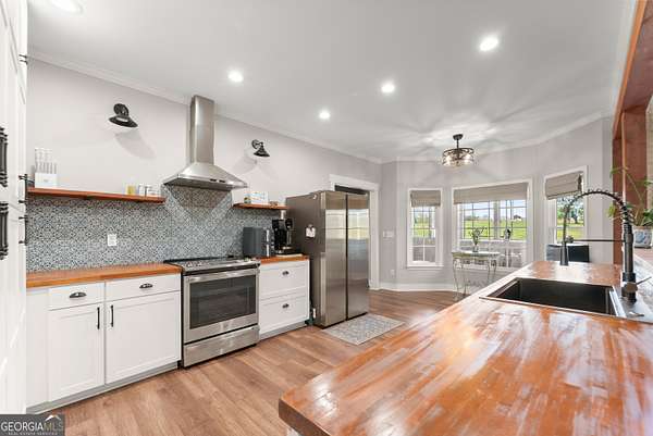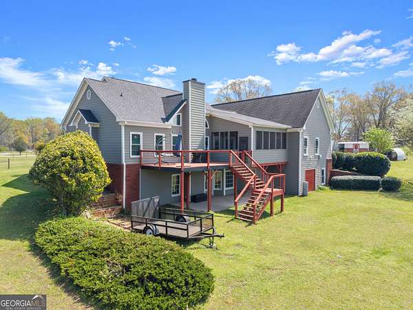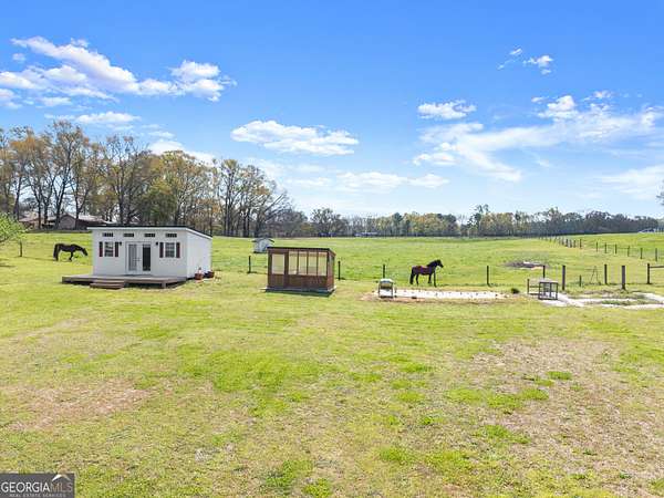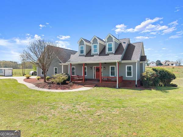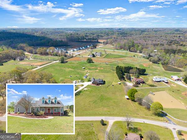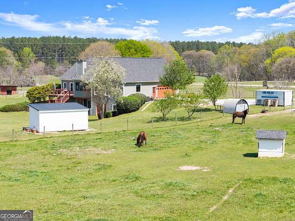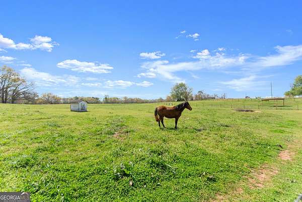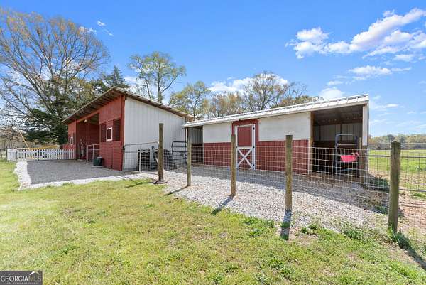 Nestled on 7.5 picturesque acres in highly sought-after West Jackson County, this turnkey hobby farm offers the perfect blend of comfort, functionality, and rural charm. Fully fenced pastures and a two-stall barn make it ideal for animals, with existing accommodations including chicken coops, horse pastures, and goat pens already in place. The property also features a greenhouse, garden area, and a beautifully finished she-shed-complete with heating and cooling-perfect for a home office or creative retreat (negotiable with sale). Inside, this stunning ranch-style home showcases a desirable split-bedroom floorplan with thoughtful upgrades throughout. The completely remodeled kitchen is the heart of the home, featuring crisp white cabinetry, butcher block countertops, stainless steel appliances, a bright breakfast area with bayed windows, and an open flow into the spacious family room. The family room impresses with vaulted ceilings and detailed molding, creating a warm yet elegant gathering space. A formal dining room and welcoming entry foyer add to the home's charm. The oversized primary suite offers a relaxing retreat with a tray ceiling and French doors leading into the luxurious en suite bath, complete with a double vanity, garden tub, and separate shower. Secondary bedrooms on the main level are generously sized, while the fourth bedroom upstairs provides a flexible bonus space perfect for guests, a playroom, or media room. An unfinished basement offers endless potential for future expansion. Enjoy outdoor living at its finest on the expansive screened porch and deck overlooking the large, level backyard and scenic pasture views. Recent updates include newer flooring throughout, fresh exterior paint, and a roof and HVAC system less than five years old-ensuring peace of mind for years to come. Conveniently located just minutes from shopping, dining, and everyday amenities, this move-in-ready property offers the rare opportunity to own a fully equipped hobby farm in Jefferson at an exceptional value.