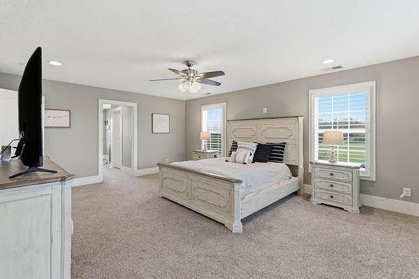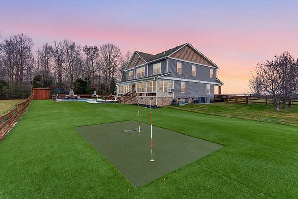 Private paradise on over 13 acres--this stunning custom farmhouse delivers resort-style living with a gorgeous in-ground pool with a tanning deck, a large outdoor patio with a stone fireplace, a full turf backyard, putting green, and pickleball/basketball court. Every inch of the property is designed for unforgettable outdoor entertaining. The gated drive brings you to a beautifully landscaped property with a large four-car garage. Updated landscaping with lava rock buffers, lush greenery, and more than 65 newly planted trees for added privacy. The fully fenced front and back yards create a true estate feel, and is perfect for dogs and kids. Inside you are greeted by the tall, bright entryway. Downstairs find a gorgeous kitchen with views of the stunning backyard, tons of cabinet and counter space and a large pantry closet. The open floor plan flows perfectly into a spacious living room with a custom fireplace and large dining area. The Four Seasons room offers year-round enjoyment overlooking the pool and sweeping acreage. There's one bedroom on the first floor with its own full bathroom. Upstairs you'll find the primary suite of your dreams - the huge bedroom overlooks the stunning backyard and expansive acreage. There is no lack of closet space with four closets and a large office space, which could also be a great nursery, sitting room or additional storage. The primary bathroom has double vanities and a large tile shower. The home offers custom features like hidden under-stairs storage, plantation shutters throughout, added cabinetry in the laundry room. Invite your friends over to play basketball or pickleball. The court is right off of a large barn with large sliding doors to store cars, boats, equipment - complete with heat/air, concrete floors, and electricity--ideal for a studio, workshop, gym, or event space. Satellite WiFi allows for full-property coverage. Potential to split lot or add second home. Plus Lender Incentive!