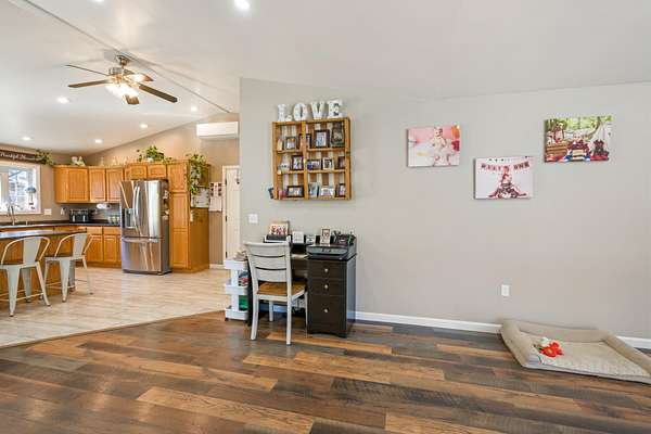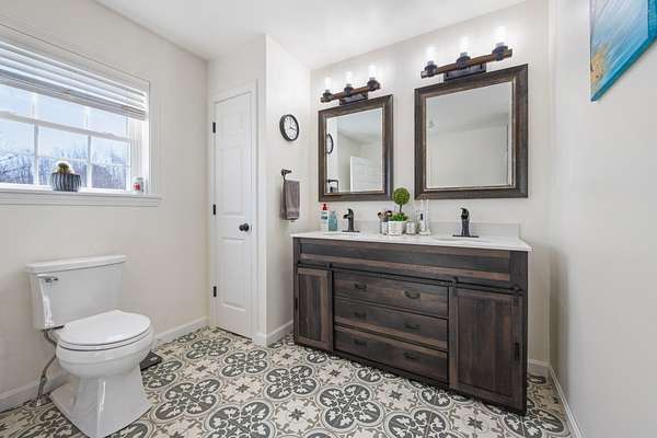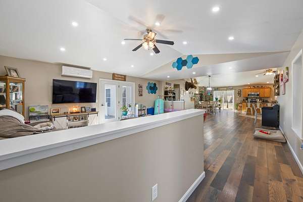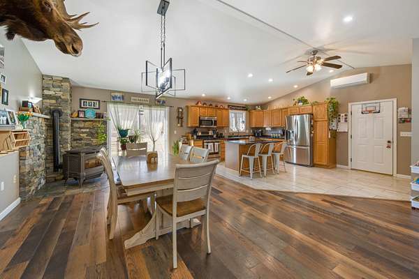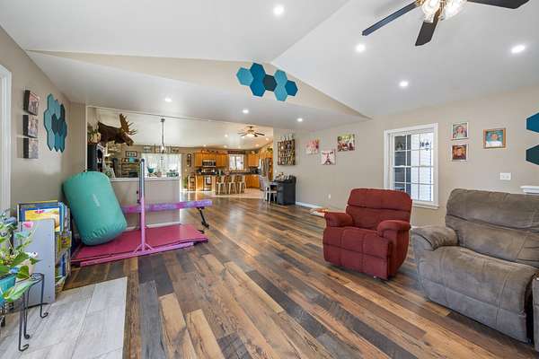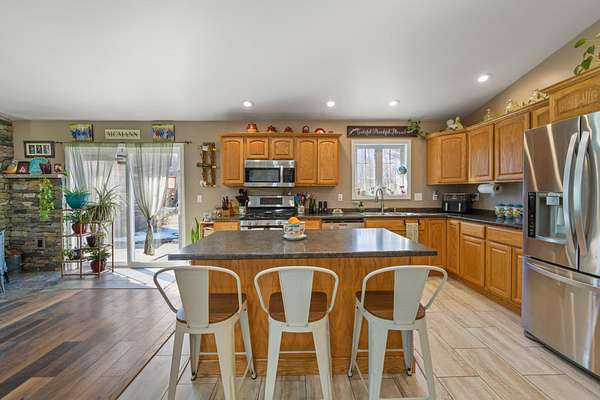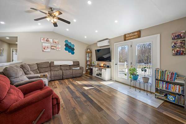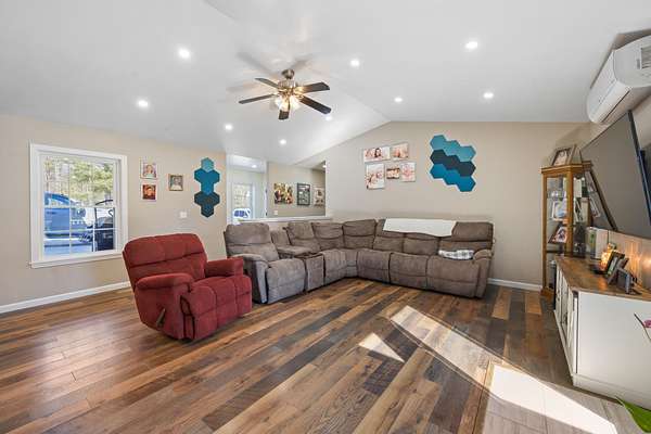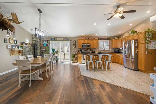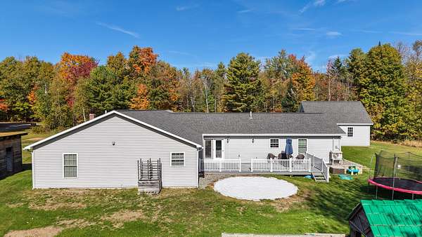 Nestled in a picturesque rural setting, this exceptional four-bedroom, 3.5-bath ranch offers the perfect balance of peaceful country living and everyday convenience, with just a short 10-minute drive to shopping, dining, and interstate access. Set on a beautifully level, wide-open lot, the property provides an ideal backdrop for outdoor enjoyment, entertaining, and future possibilities. The home is thoughtfully designed with both functionality and comfort in mind, featuring a spacious layout that separates the primary living quarters from the children's wing for added privacy. At the heart of the home, a stunning open-concept main living area showcases soaring cathedral ceilings and seamless flow between the kitchen, dining, and living spaces--perfect for gathering and entertaining. The kitchen is complemented by a generous walk-in pantry, offering both style and practicality. This home boasts two primary suites, ideal for multi-generational living or hosting guests. The larger suite is a true retreat, featuring a beautifully tiled walk-in shower and an impressive 6' x 20' walk-in closet. The second suite offers its own private bath complete with a relaxing jetted soaking tub and dual closets. Step outside to enjoy a 16' x 32' composite deck overlooking the backyard, complete with an 18-foot pool pad--ready for summer fun and outdoor entertaining. Additional highlights include radiant heat throughout the entire home, providing exceptional comfort during Maine winters, an attached two-car garage, and a detached oversized one-bay garage with a finished space above, perfect for a home office, studio, or guest area. A paved driveway and on-demand generator add convenience and peace of mind. This is a rare opportunity to own a thoughtfully designed home that combines space, flexibility, and modern amenities, all set in a serene country location with easy access to everything you need.