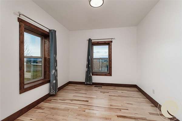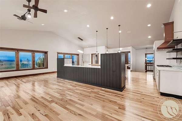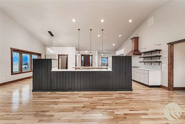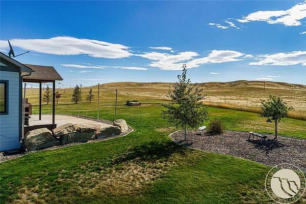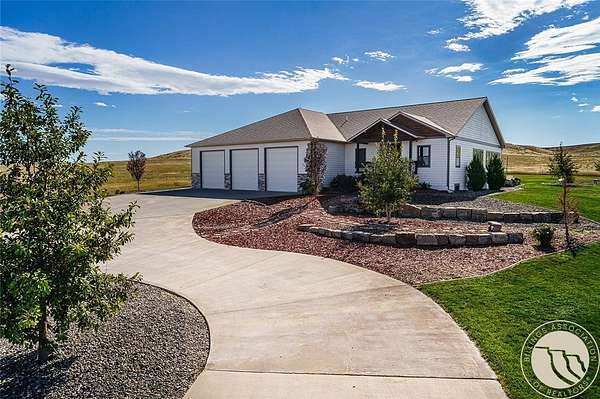 Nestled on 3.257 peaceful acres, this spacious ranch-style home offers comfort, function, and sweeping Beartooth Mountain views. The main level features hardwood floors, an open vaulted living area, and a bright kitchen with quartz counters and a large center island perfect for gathering and entertaining. The primary suite includes washer/dryer hookups in the walk-in closet, plus an additional bedroom and full bath to completethe main floor. The lower level offers three bedrooms with LVP flooring, a generous living area, full bath, dedicated laundry, and ample storage. A massive 5-car attached garage/shop boasts three 14-foot doors, space for a Class A motorhome, and a built-in car lift, with access to both the main level and basement. Relax on the private back patio with fireplace and enjoy quiet country serenity.