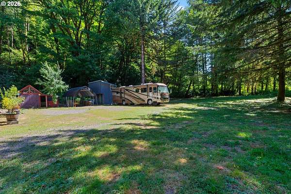 Discover a rare opportunity to own 30 acres across two tax lots, with the seller open to owner-carry financing. Tucked away in a peaceful, remote setting with river access, the property offers privacy, natural resources, and endless potential for homesteading or sustainable living.The 3-bedroom, 2-bath home features a spacious primary en-suite with a walk-in closet, an open-concept kitchen and living area, and a cozy fireplace. Ceiling fans provide comfort year-round, while a newer metal roof and a generous 38' x 8' covered deck (added in 2019) make outdoor living easy.The land includes approximately 7 flat acres and 23 acres of mountain timberland, zoned for agriculture and forestry, with a recent survey completed in 2021. Water resources abound with two natural springs (one year-round, one seasonal), plus a private well and septic system.Outbuildings and amenities support a self-sufficient lifestyle, including ample outdoor parking, two RV spots with power hookups, an approximate 8' x 8' chicken coop with attached feed storage, an approximate 16' x 10' powered shop with an approximate 16' x 12' loft, and a covered overhang for equipment storage.Whether you envision a private retreat, working homestead, or legacy property for generations to come, this unique offering delivers space, resources, and opportunity. Buyers to perform their own due diligence. Come experience the potential for yourself.