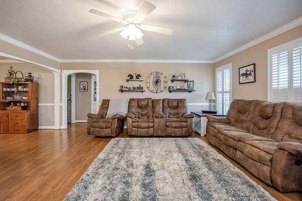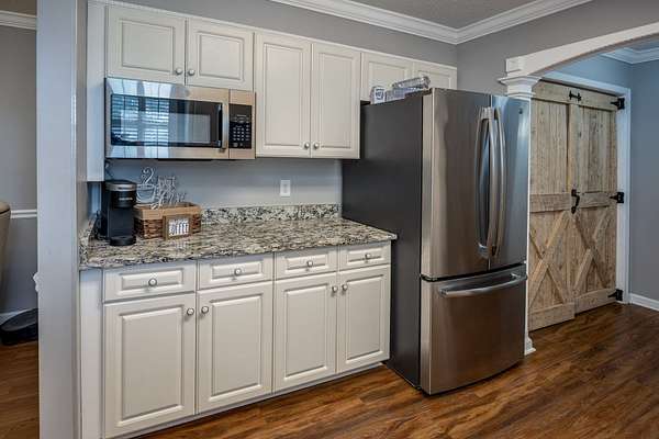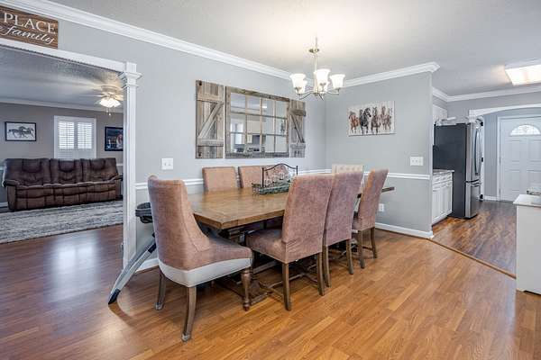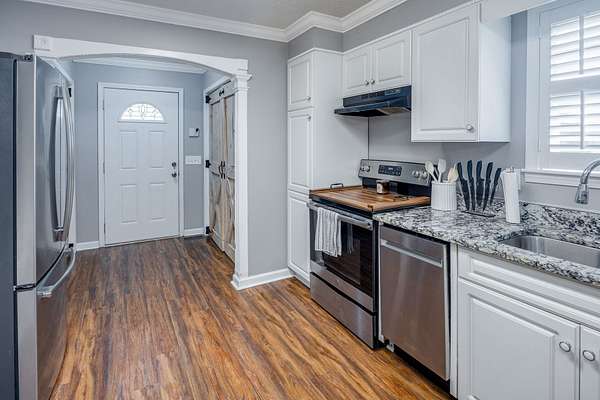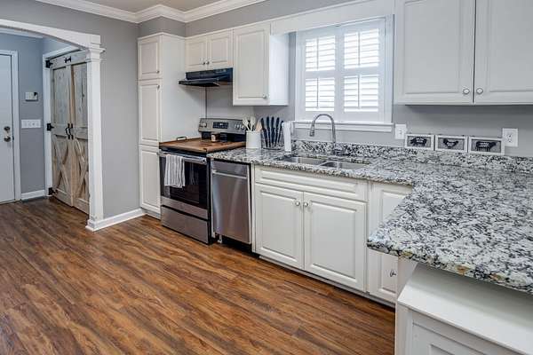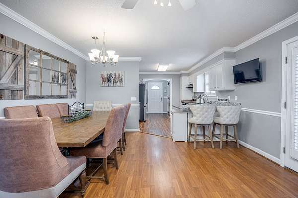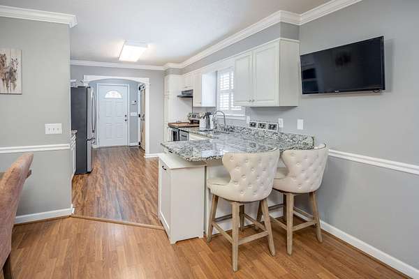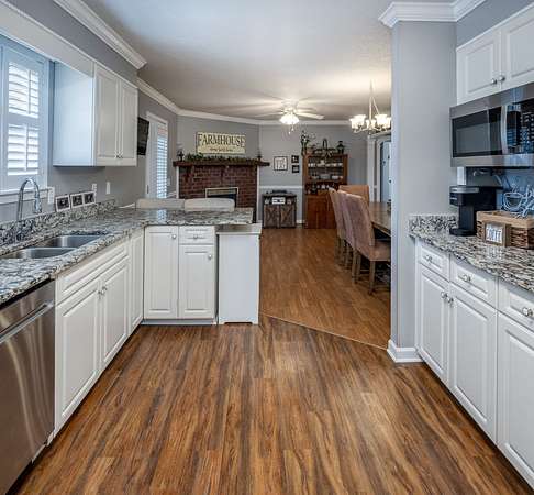 Take a look at this charming 3-bedroom, 2-bath home with 1,768 square feet of well-planned living space. Inside, you'll find a galley kitchen with brand-new barn doors on the pantry, oversized guest rooms, and a cozy dining area with a gas fireplace. The dining and living spaces are separated by a case opening, giving the home definition while keeping the layout open and inviting. Just off the dining room, a screened porch creates the perfect spot for relaxing or entertaining. Outside, there's also a double carport with extra storage. This home offers space, style, and comfort all in one.